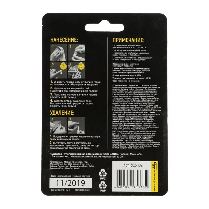 Двусторонние самоклеящиеся полоски с системой бесследного удаления AVIORA, в упаковке 12 шт. 5307746