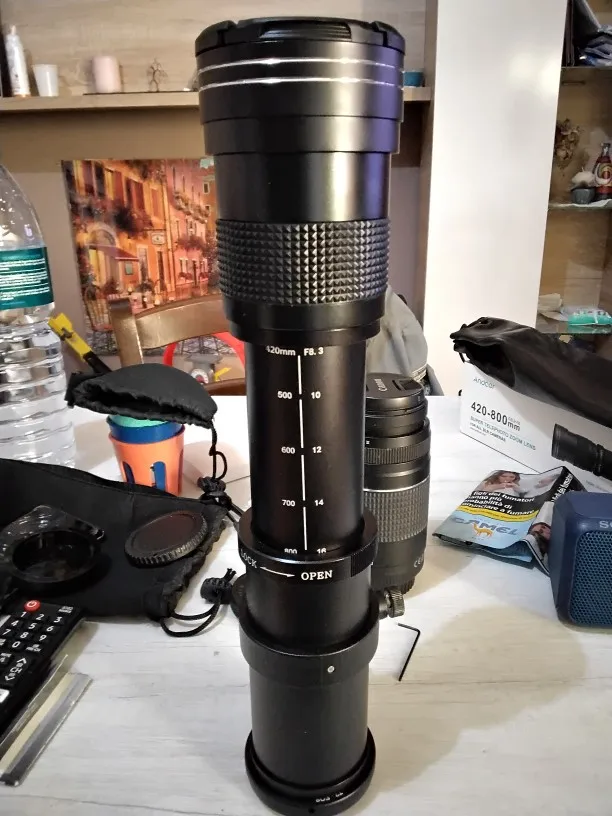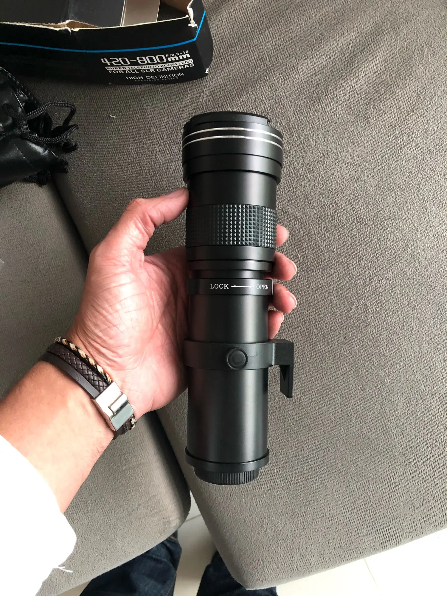 За эти деньги это действительно хорошо. Фокус хороший, не слишком чувствительный, кольцо блокировки для фокусного расстояния не слишком велико, поэтому убедитесь, что вы скручиваете его плотно. Если вы используете Canon Крепление камеры к штативу, а не к объективу, так как зеркальная защелка вызовет Потертость/размытие. Срок доставки составляет около 2 недель. T2/T крепление/адаптер для Canon EOS также необходимо приобрести. Много практики нужно получить лучшее качество снимков.