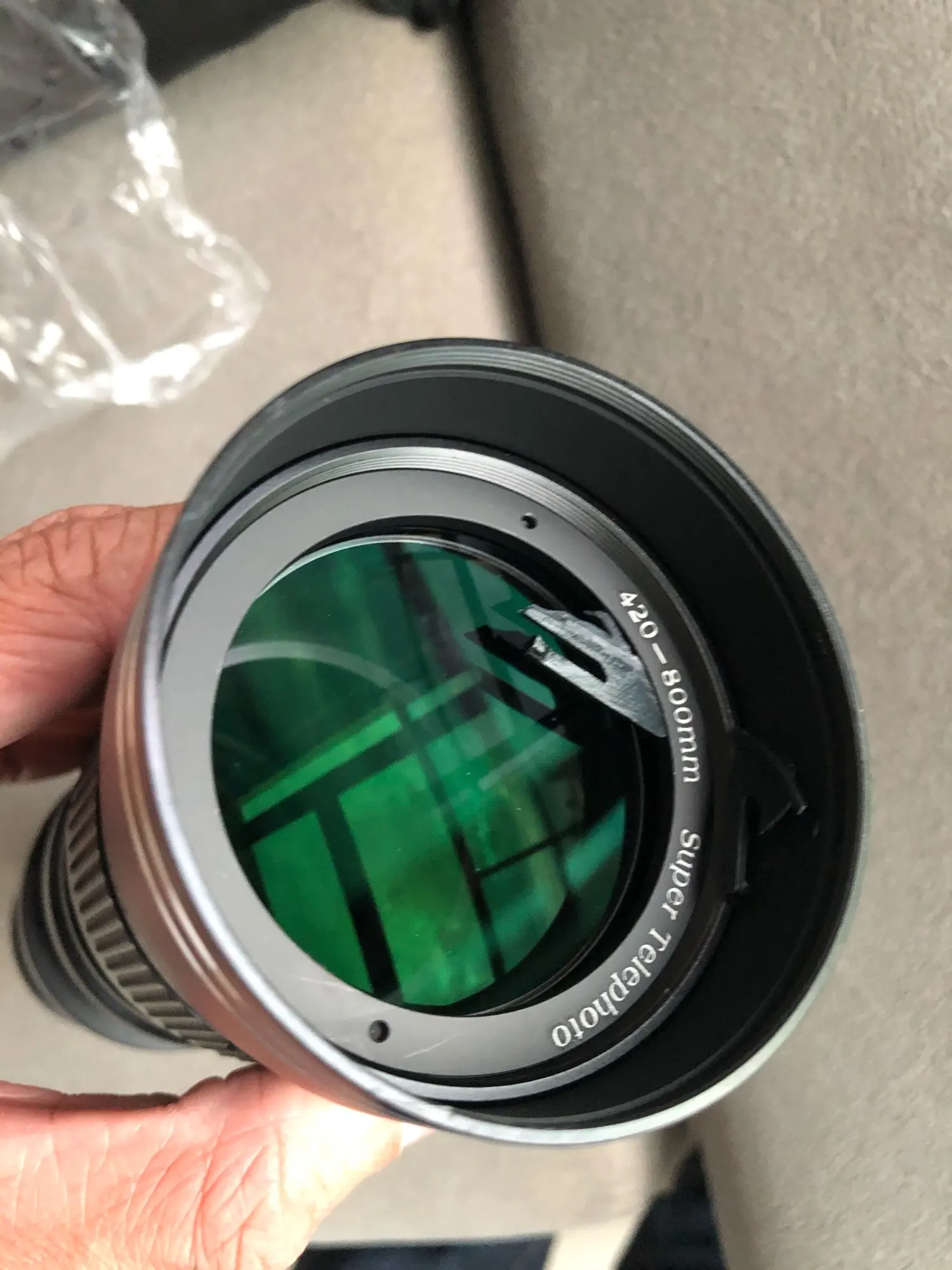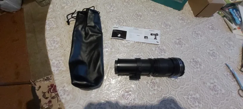 Эта доставка была очень быстрой! К сожалению, не правильный адаптер (хорошо выглядит после). Я вижу этот объектив больше как бинокль. До сих пор только пушистые фотографии, потому что фокусировка может управлять хорошо, но результат фотографий после этого, тем не менее, Подлинная драга/плохо. Пульт дистанционного управления работает с этим объективом.
