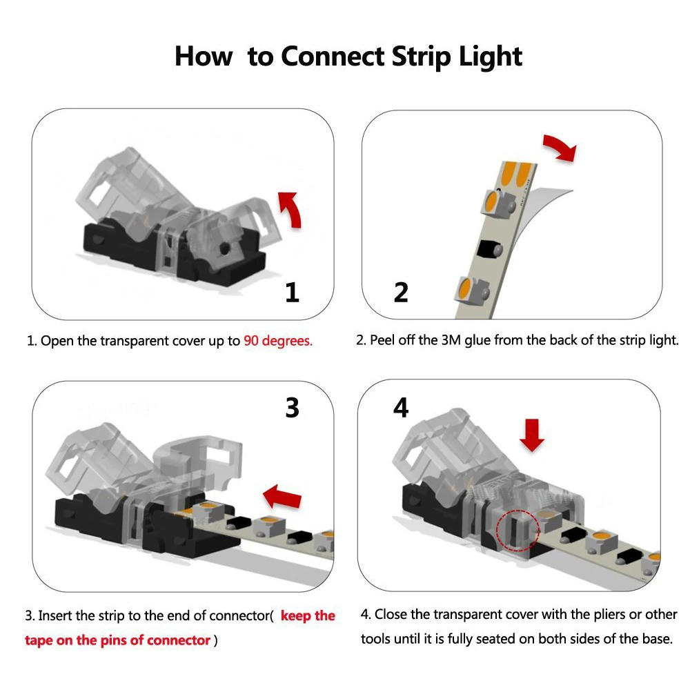 Особенности:Модернизированная версия с отверстием в крышке, который легче использовать, чем старый тип.Подключение к проводу без изоляции, без пайки, без скручивания, без привязки.Совместимость с нитью и твердым проводом.Возможность отключения после подключения для рассмотрения технического обслуживания.Экономит 2/3 времени на подключении полосок и установке проводов, особенно смешанных проектов подключения.Идеальный разъем для светодиодный свет для силы. Это беспроблемное решение для необходимости подключения и расширения светодиодный светильник.Характеристики:100% новый и высокое качествоМатериал: пластикНоминальное напряжение: <300 вНоминальный ток: <10AТемпература корпуса: <135 °CЭкзогенная Морозостойкость: -45 °CРабочая среда: влагостойкая вентиляционная среда-20 °C ~ 80 °CИспользование: Подключение водонепроницаемой 5pin светодиодной лентыРуководство по установке:1. Убедитесь, что ваш светодиодный светильник-полоса, все контакты чисты.2. Снимите ленту 3 м вокруг области линии резания на задней части светодиодный ленты, затем вставьте светодиодный светильник в застежку, С контактами светодиодный ленты, сидя на штифтах застежки-убедитесь в том, чтобы соответствовать + стороне ленты к черной проволоке; (Примечание: не нужно отрывать силикон на поверхности светодиодной ленты вокруг области линии пайки.) Закройте застежку с силой.4. Вставьте провод в другую сторону. Закрепите и соберите его плоскогубцами. Нажмите на крышку вниз и больше не требуется работа. (Примечание: Нет необходимости прокладывать в конце провода.)5. Проверка соединения успешна.Посылка включает в себя:5 х лент к проводным светодиодным разъемам