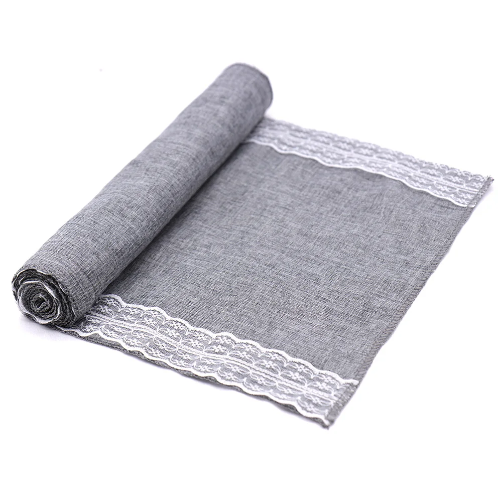 В рустикальном стиле кружевная настольная дорожка природное подражали полотно, мешковина из натурального джута скатерти серого цвета, отличный подарок на свадьбу, Рождество или день рождение вечерние украшение стола