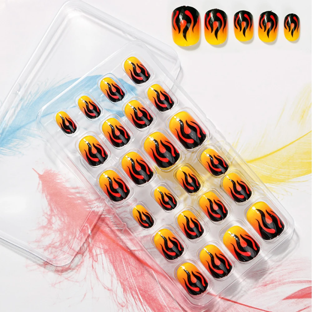 24 шт.лот Детские накладные ногти на Хэллоуин огонь полное покрытие детский клей самостоятельный дизайн ногтей для девочек DIY маникюрные ногти Декор