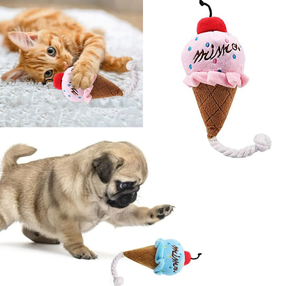 Пищалка игрушка для домашних животных, мягкая милая плюшевая головоломка для собак, кошек, жевательная пищалка, пищалка игрушка для домашних животных, мороженое