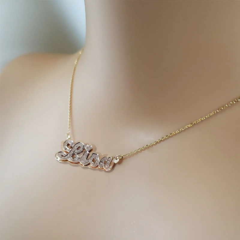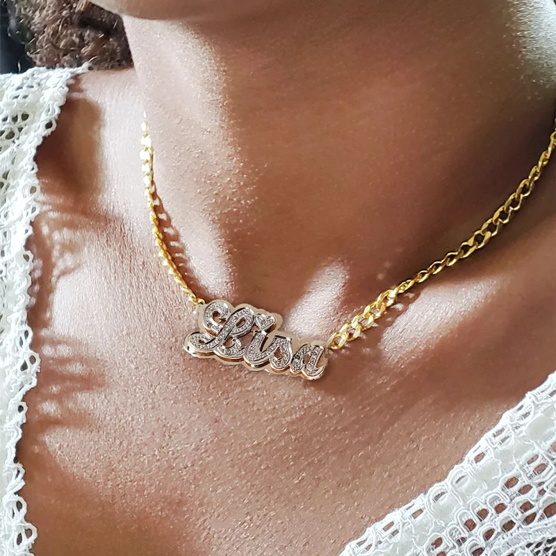Ожерелье с двойной табличкой на заказ от KristenCo, 3D именной кулон, персонализированная цепочка Фигаро, именная табличка на заказ, ожерелье