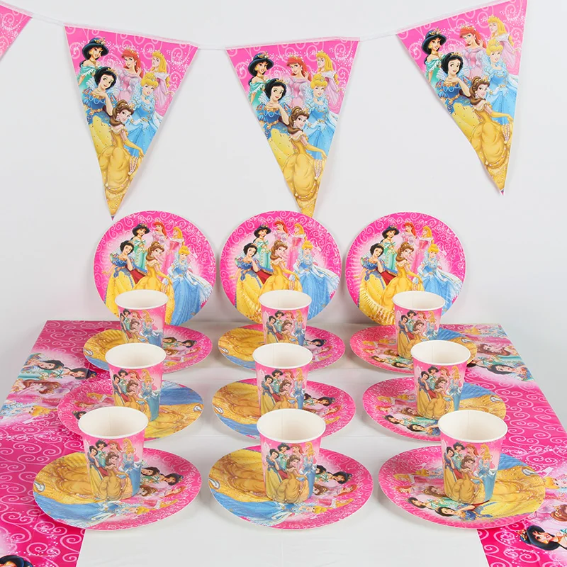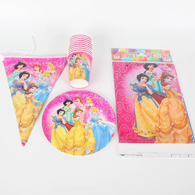 51 предмет, украшение принцессы, 20 предметов детского дня рождения, Одноразовый бумажный поднос для чашек, баннер, набор скатертей