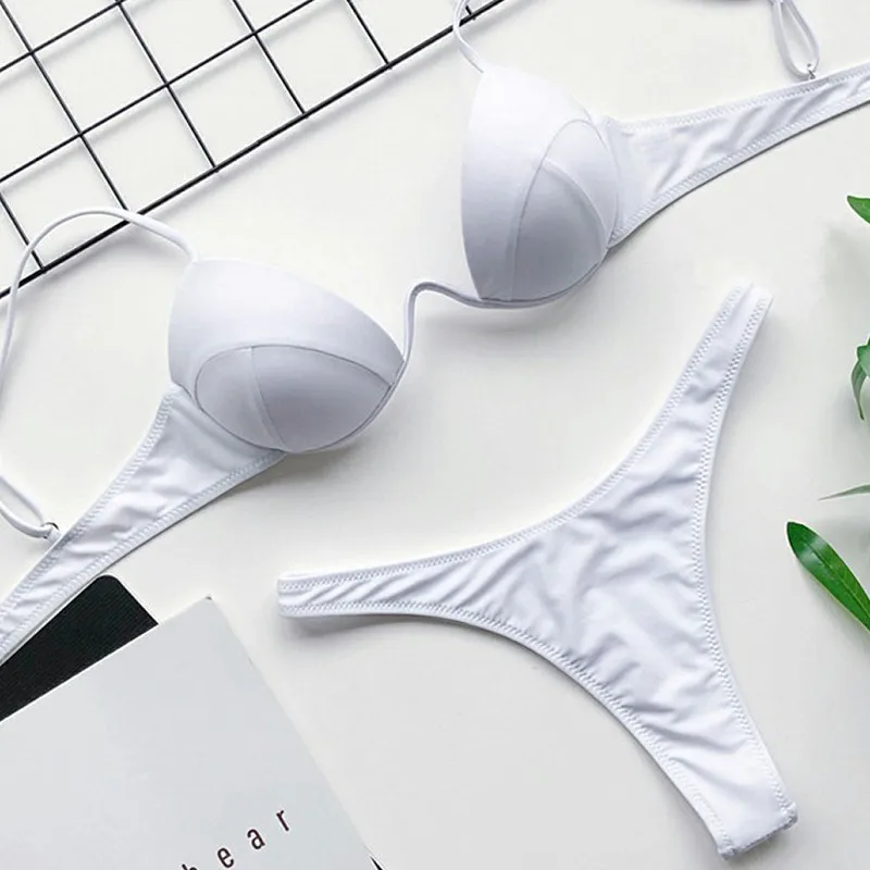 Новинка 2021, пикантные женские комплекты бикини с пуш-ап, однотонные женские пляжные купальники с глубоким вырезом, купальный костюм с V-образным вырезом, летний купальный костюм