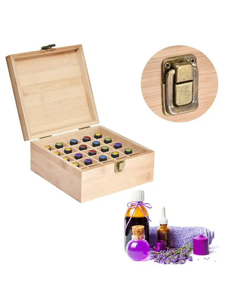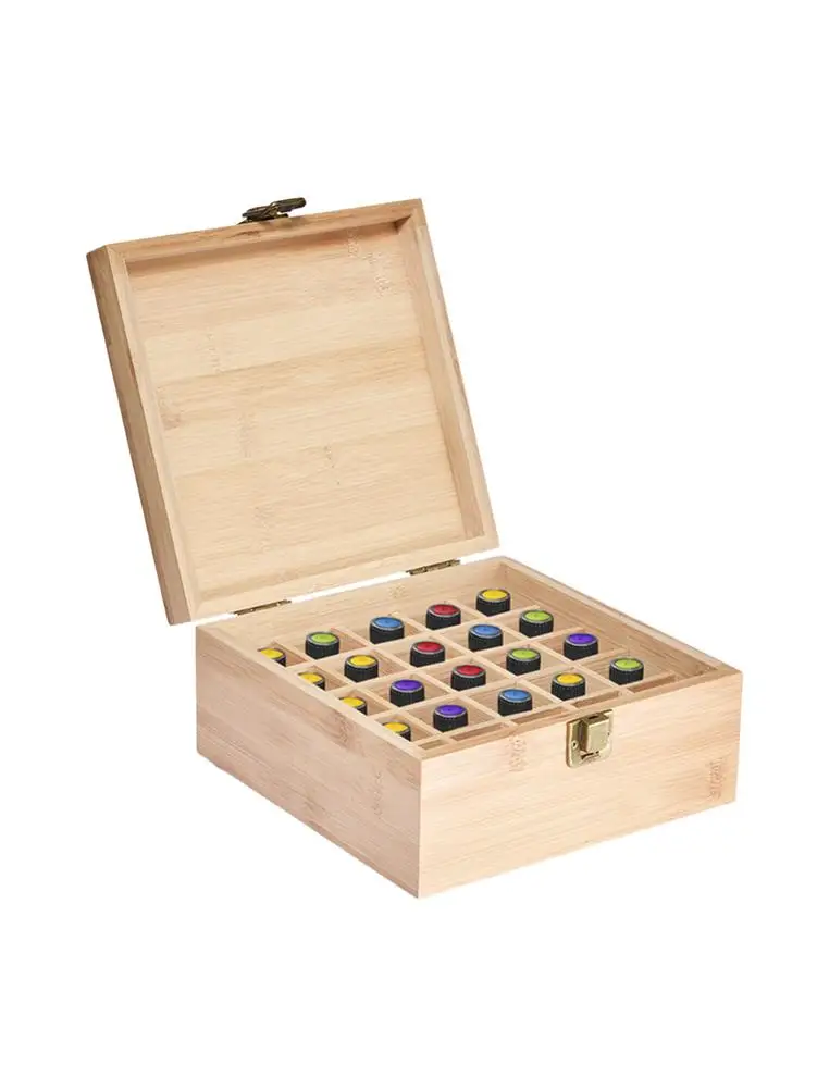 Бамбуковая коробка для хранения эфирных масел, 25 ячеек, органайзер...