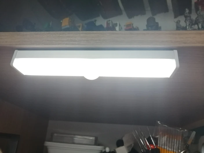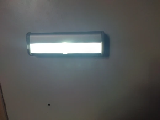 Он работает очень хорошо, очень быстро включается при малейшем движении и дает достаточно света. Он также быстро заряжается и очень хорошо прикрепляется к металлической полке, так как он Магнитный сзади.