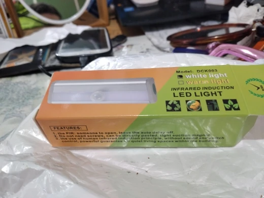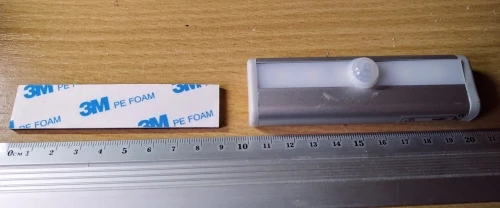Сначала я не очень понял, потому что он не хотел выключаться. После чтения комментариев я увидел, что он работал лучше в темноте, и что свет погас через 15-20 секунд, когда он больше не обнаруживает движение. Крышка батарейного отсека, где мы приклеиваем клейкую часть, много двигается