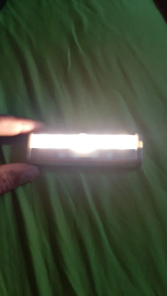 Продукт пришел в хорошем состоянии, он работает идеально и имеет действительно мощный свет. Простота в использовании, с инструкциями и магнитом, чтобы его можно было поместить в любую полезную область. Он использует 2 маленьких аккумулятора. Я рекомендую товар. Спасибо!