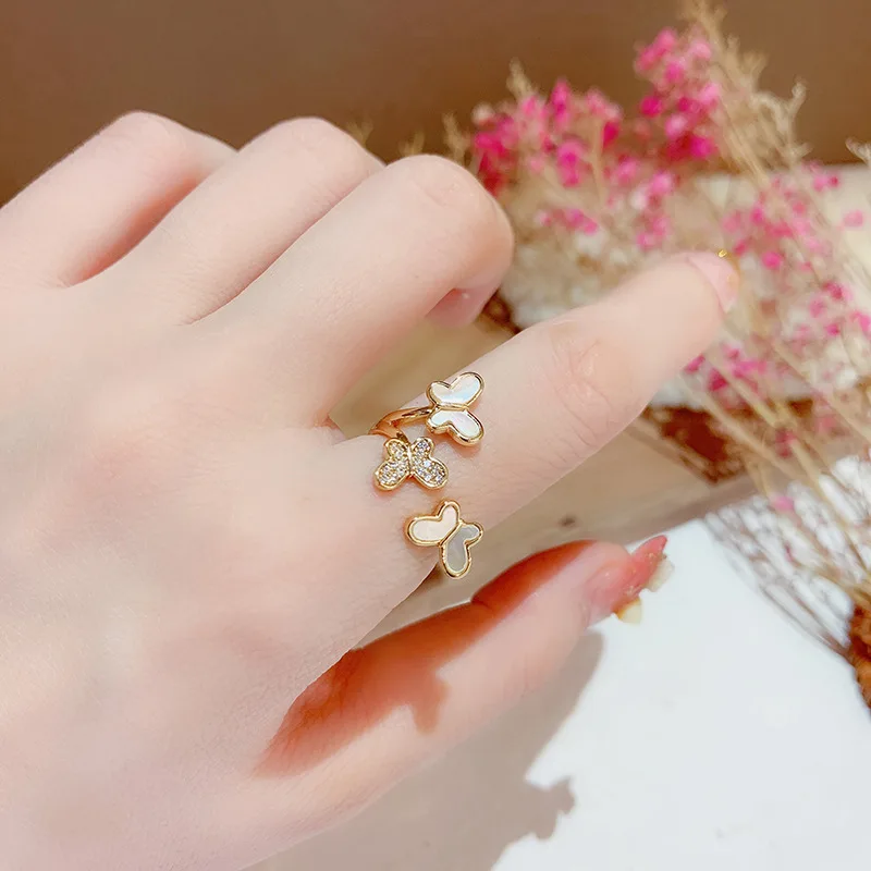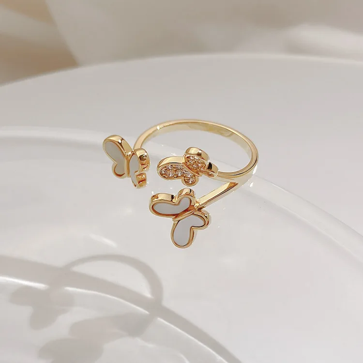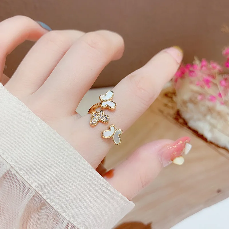 2020 в Корейском стиле; Новая стильная текстильная спортивная обувь темперамент броши в виде бабочки из раковины открытие кольцо Модные Простые универсальные кольцо женских украшений