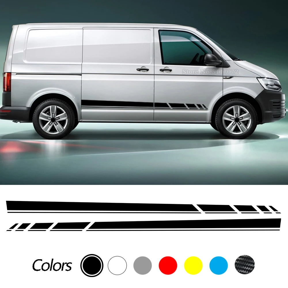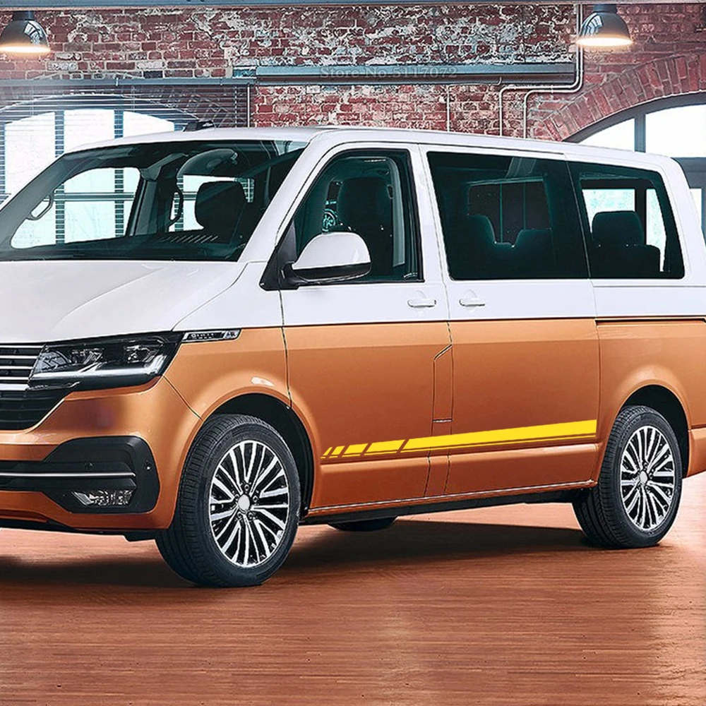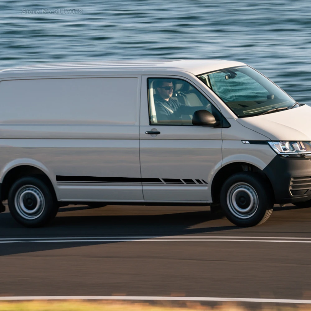 Наклейки на кузов автомобиля, виниловые, гоночные, спортивные, длинные, с полосками по бокам, наклейки для VW Transporter T4, T5, T6, автофургона, 2 шт.
