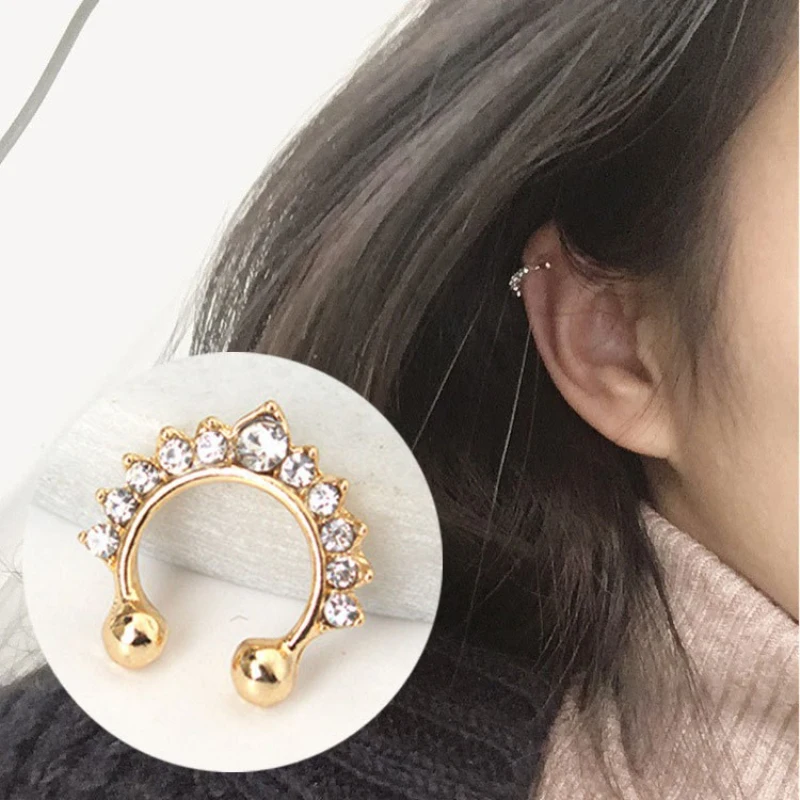 Бинго Корона u-образные серьги вокруг уха Clip91298 с украшением в виде кристаллов поддельные Ювелирное кольцо в нос