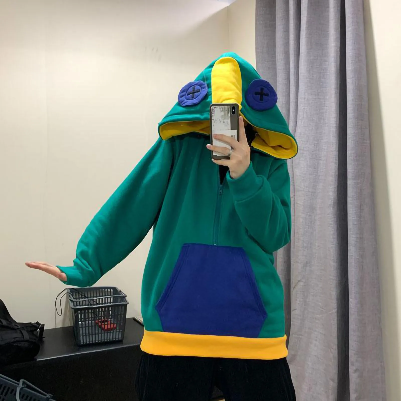 S-2XL Для женщин зиму, одежда с Смешные, милые, миленькие в японском стиле (Каваий), большие глаза, выражение шляпы пуловер с длинным рукавом Толстовка Топы Прямая блуза с короткими рукавами