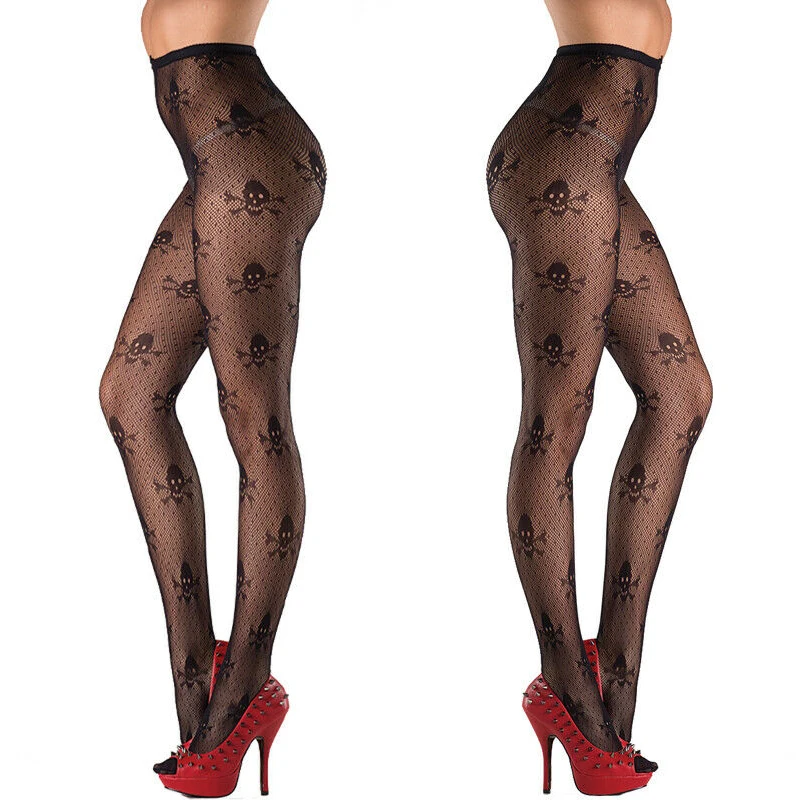 Новинка, модные сексуальные женские колготки для Хэллоуина, Экзотическая одежда, сетчатые чулки, колготки с принтом черепа, женские носки