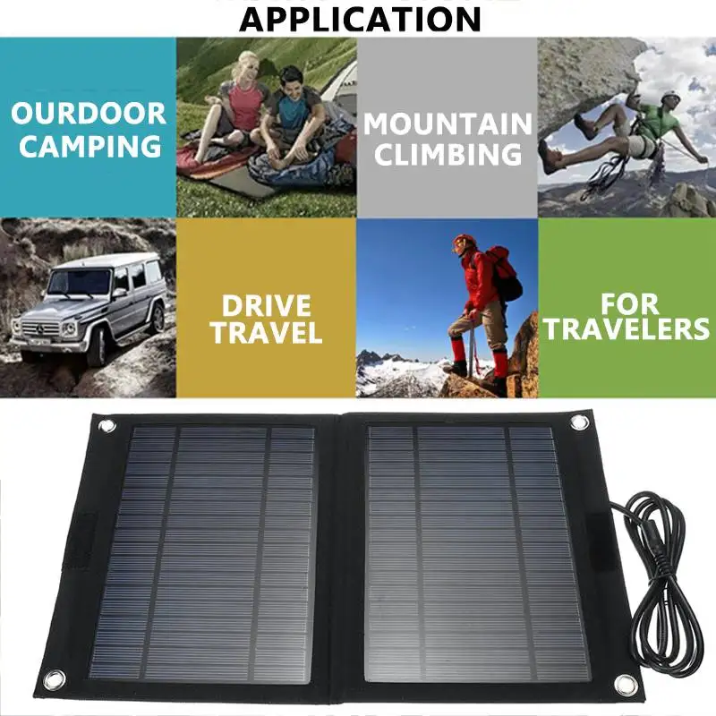 Складная Панели солнечные 25W 12V5V Solar Cells Мощность Bank пакет USB кабель Водонепроницаемый для телефона рюкзак Кемпинг Пеший Туризм