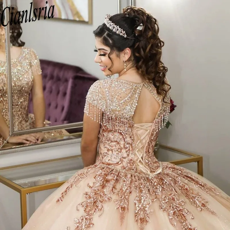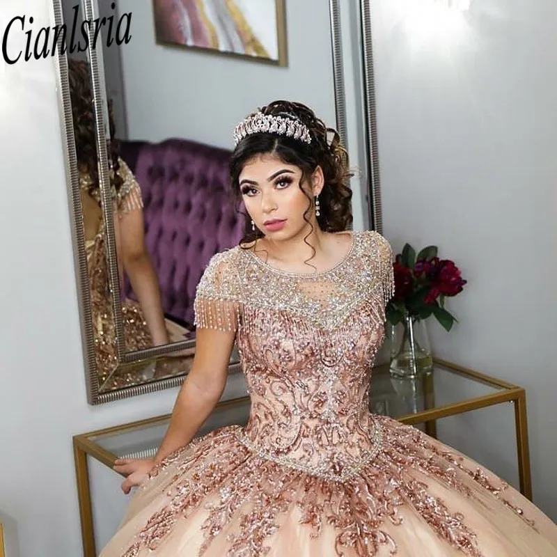 Бальное платье цвета шампанского из тюля, платье для Quinceanera 20...
