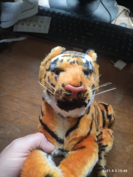 игрушка пришла раньше чем за месяц. упаковано было в целофановый пакет. само тело мягкое, а голова немного твердая (типа как из пенопласта, но не он). голова немного форму держит, поэтому при перевозке наверное немного деформировалась, примялась. и за ушами какие-то верёвки видны, если поставить их как хочется, чтобы красивее было. в общем, маленьким детям пойдет на развлечение.