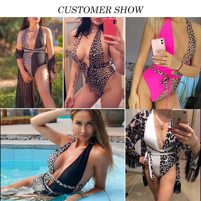 Слитный купальник Peachtan с леопардовым принтом, женское бикини с глубоким V-образным вырезом, бандажный купальный костюм 2022, монокини, купальник, женские купальники