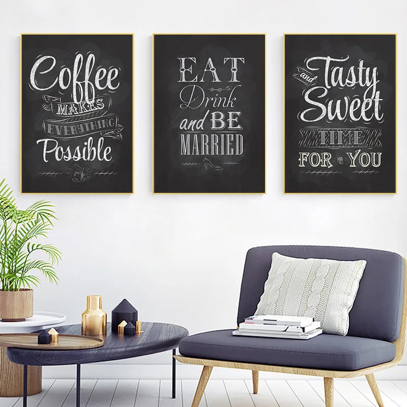 Винтажная печать с цитатами кофе, настенный художественный Ретро плакат, Декор, вкусный стек, Художественная Картина на холсте, настенные картины для кафе HD0039
