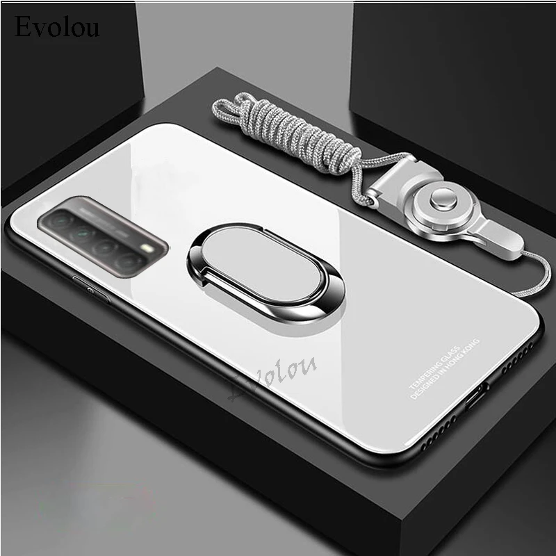 Чехол для Huawei P Smart 2021 Y7A, чехол-подставка с магнитным кольцом для телефона Huawei Y7A P Smart 2021, чехол-накладка из закаленного стекла
