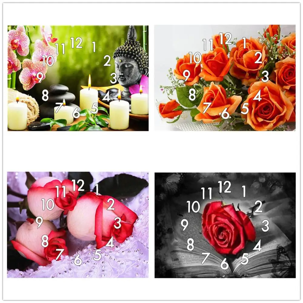 Набор для алмазной живописи 5D с часами, Набор для вышивки крестиком, мозаика с красными цветами, подарок