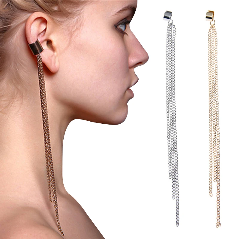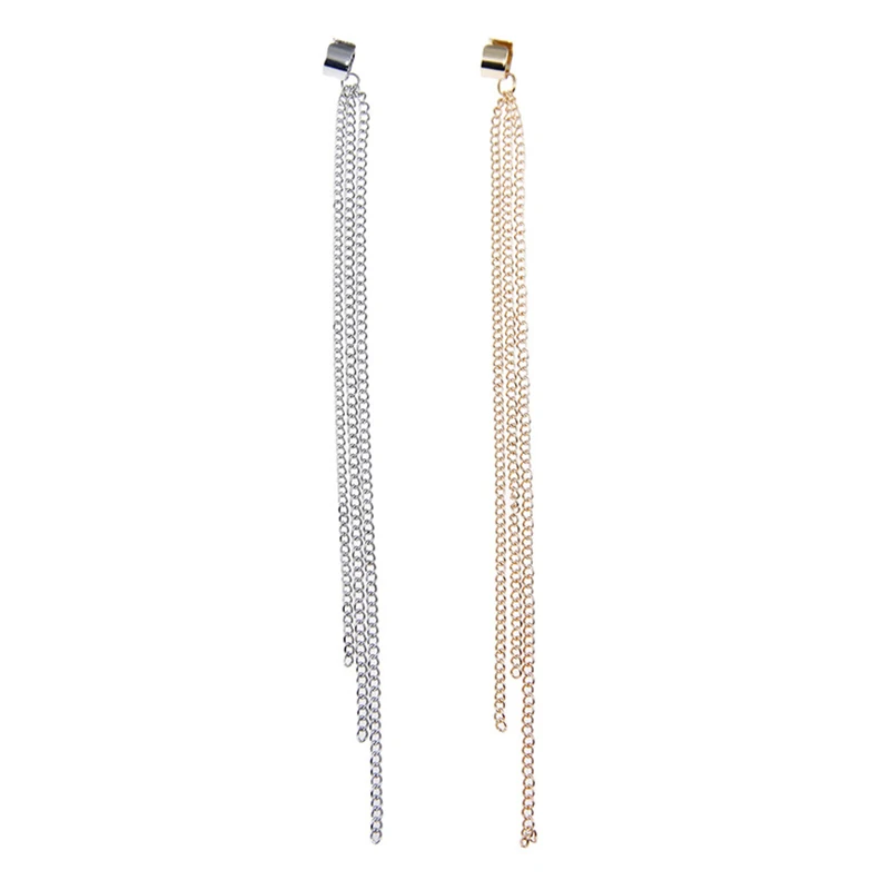 Пикантные женские длинные металлические цепочки из сплава с кисточками, зажимы для ушей, женские серьги ювелирные изделия