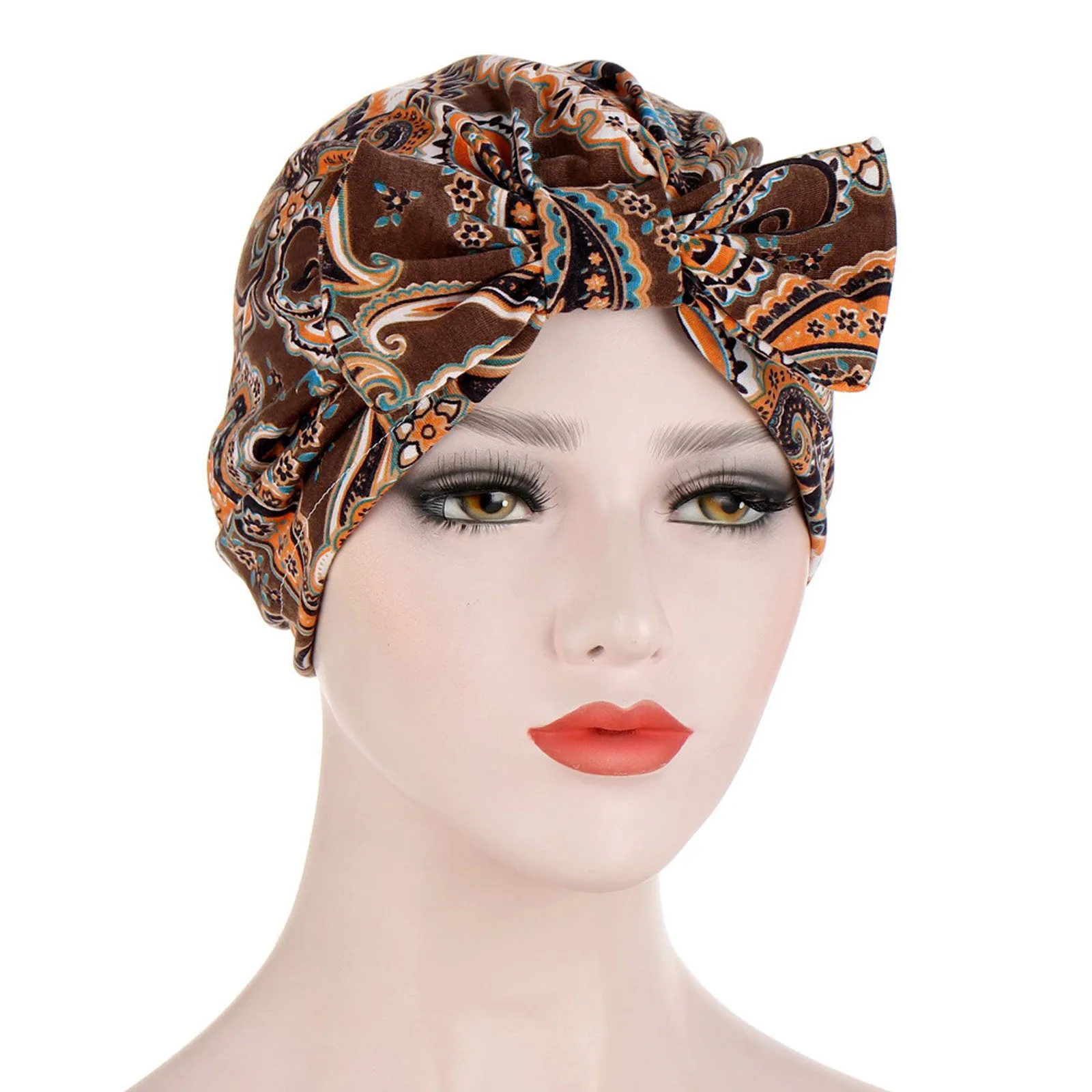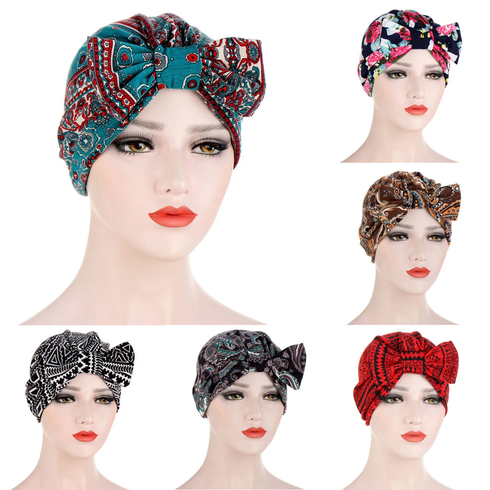 1 шт. Для женщин, с бантом, с проектом Индия шапка, шапки-бини Подставки для фотографий для волос рюшами Рак химиотерапия шляпа, украшение-бант, Женская Индия тюрбан Шапки