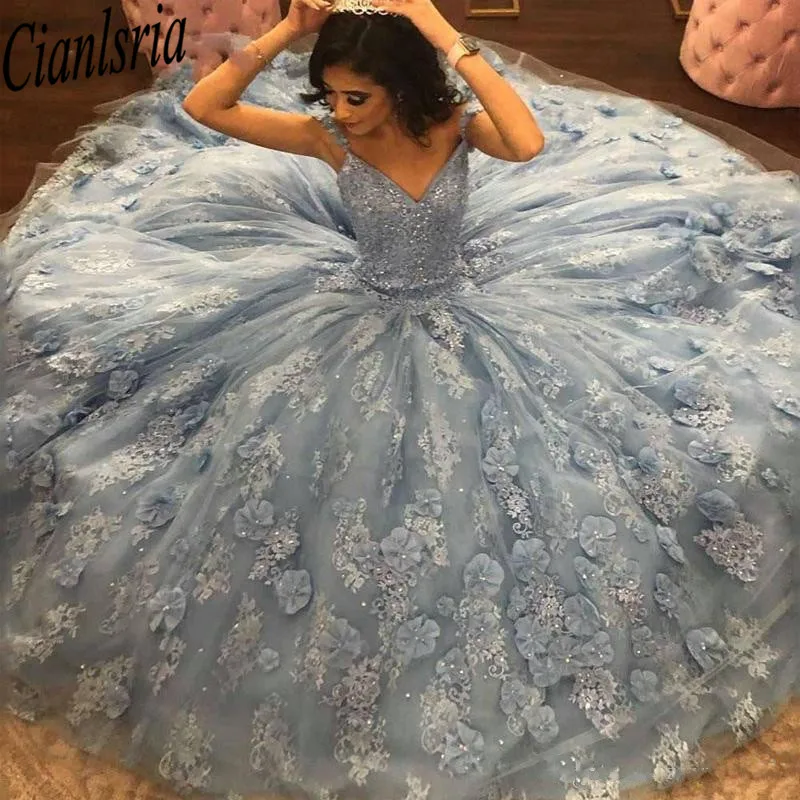 Небесно-голубое платье Vestidos de 15 anos с кружевной аппликацией,...