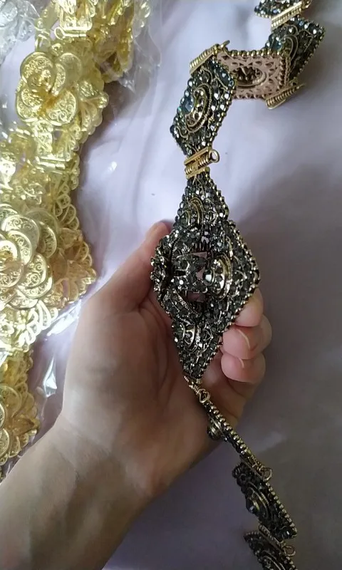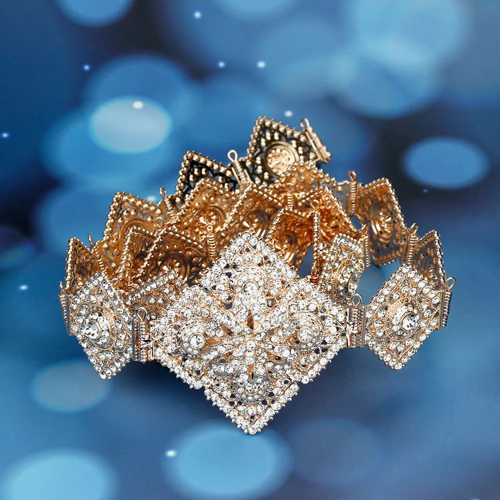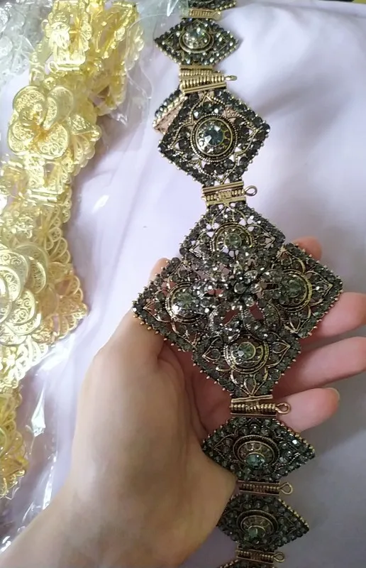 Женский ремень с металлической цепочкой Sunspicems, регулируемая длина, цвета золото, с серыми кристаллами, в марокканском стиле, украшения для свадьбы