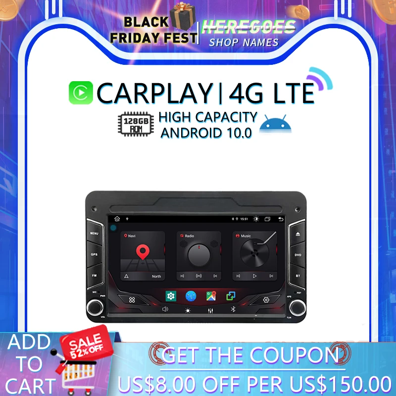 Автомобильный DVD-плеер Carplay DSP Android 10,0 для VW Volkswagen ...