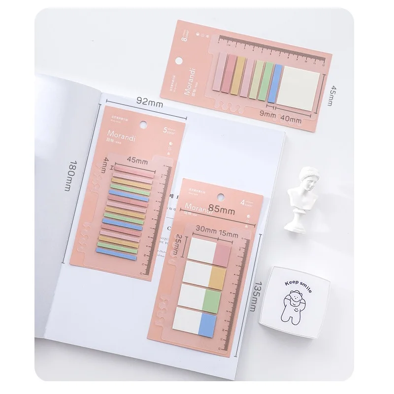 Набор цветных клейких блокнотов Morandi, Гибкая линейка плата камеры, клейкий блокнот, индексные наклейки, винтажные радужные, офисные, школьные, F812