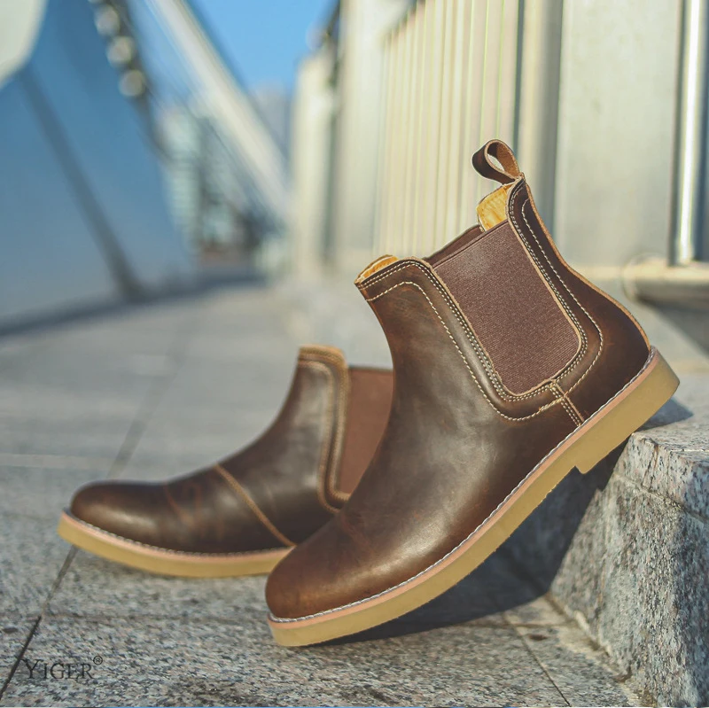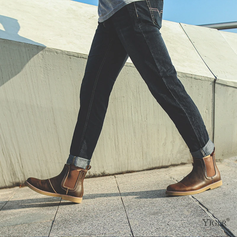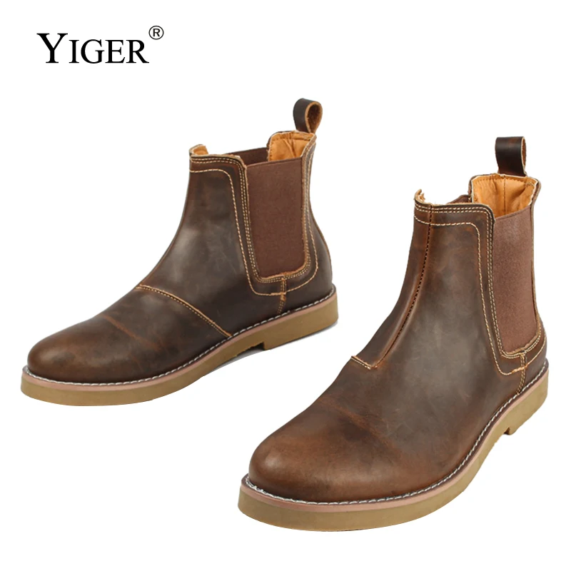 YIGERмужские ботинки челси; Мужские Ботинки Martin; Мужские ботильоны в британском стиле; Мужские зимние теплые ботинки из натуральной кожи; Crazy Horse Skin