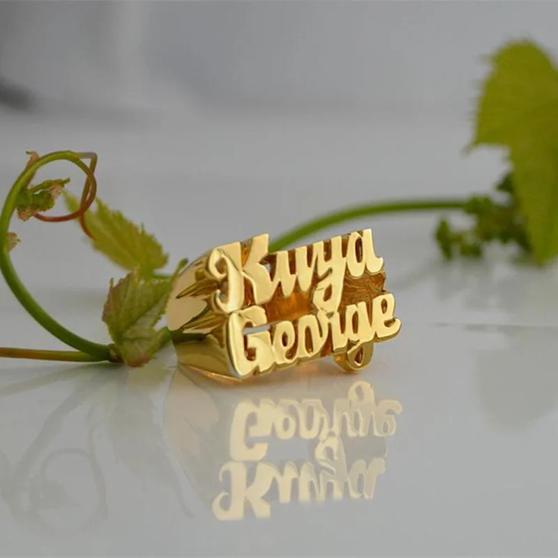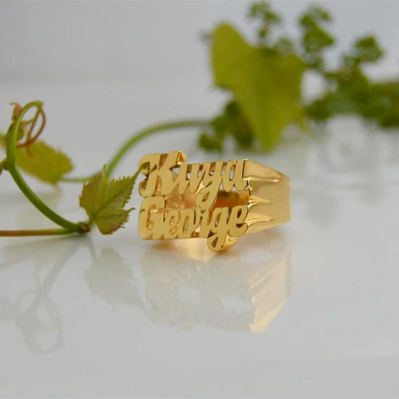 2021 Кольцо Имя Кольца На заказ позолоченные 18 К серьги персонализированные резные с двумя пальцами имя кольцо в стиле унисекс на заказ