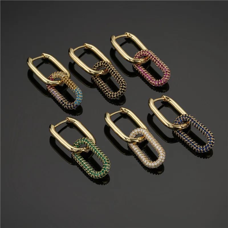 Серьги-кольца женские двусторонние, эффектные украшения золотого цв...