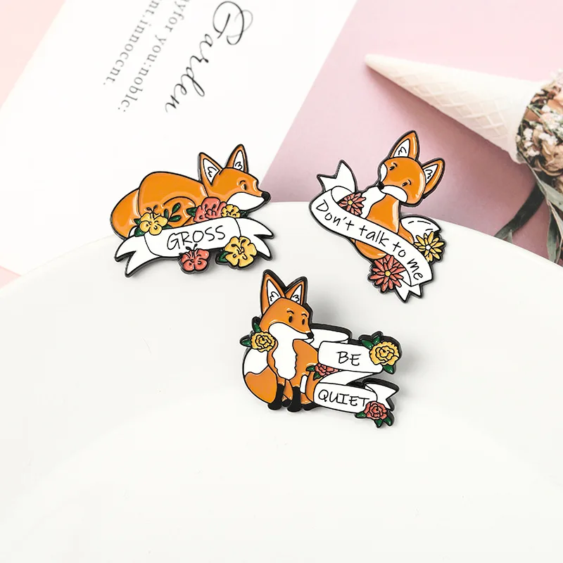 Милый мультфильм лисица эмаль булавки На Заказ Цветок баннер животн...