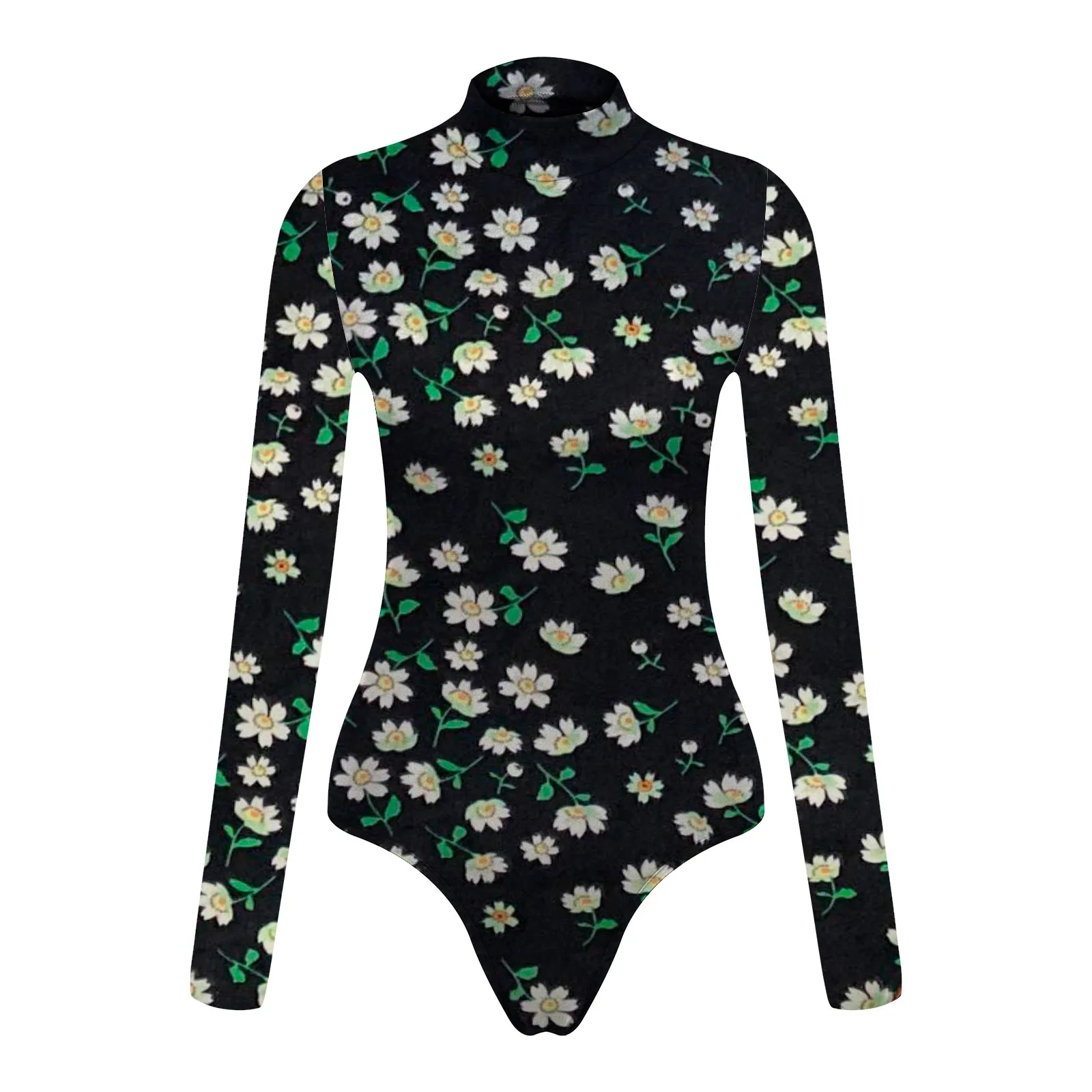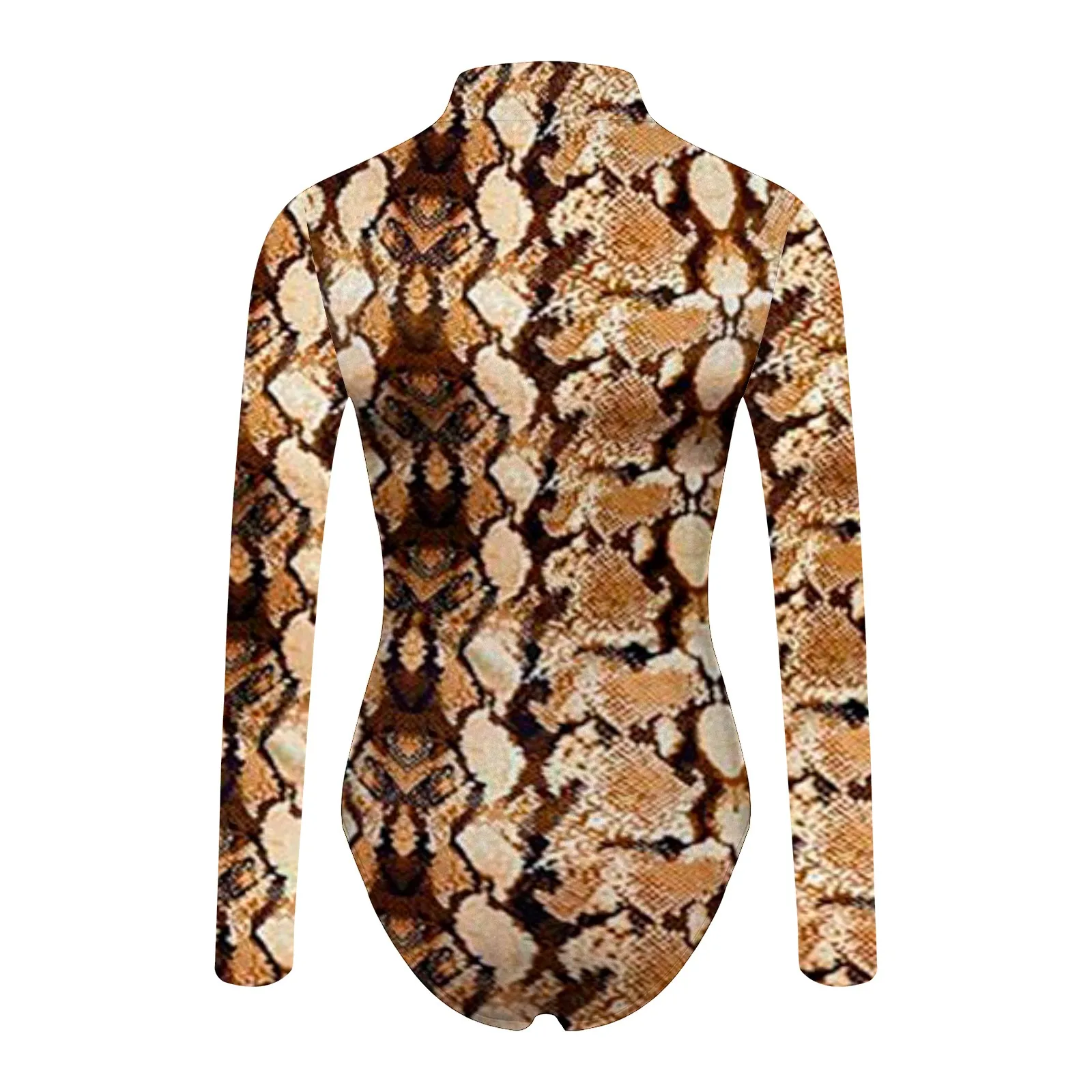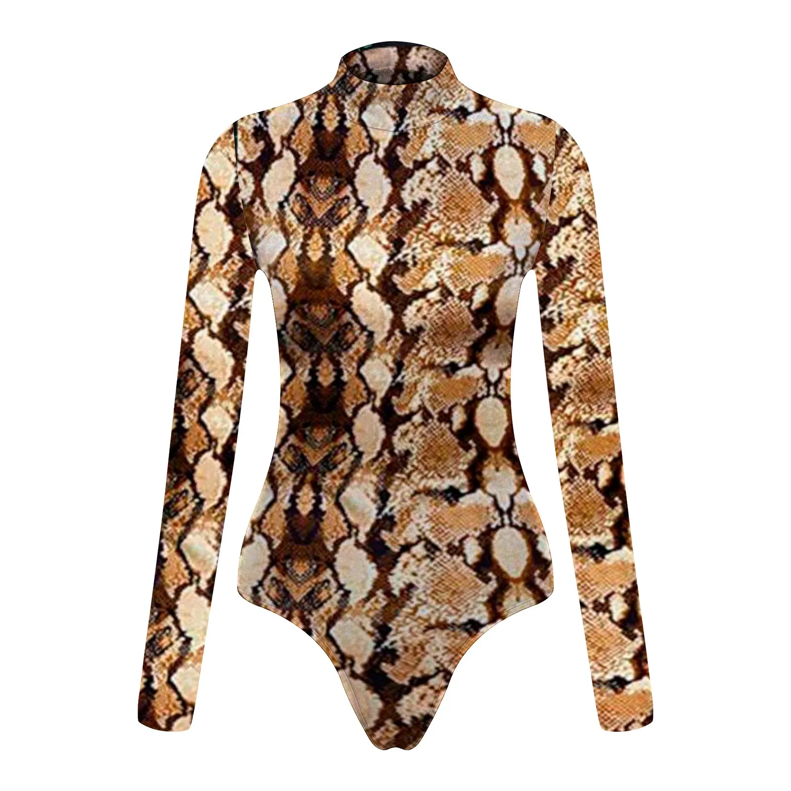 LIANTIWomen's ложный принт модные высокие воротники Топы с длинным рукавом боди комбинезон