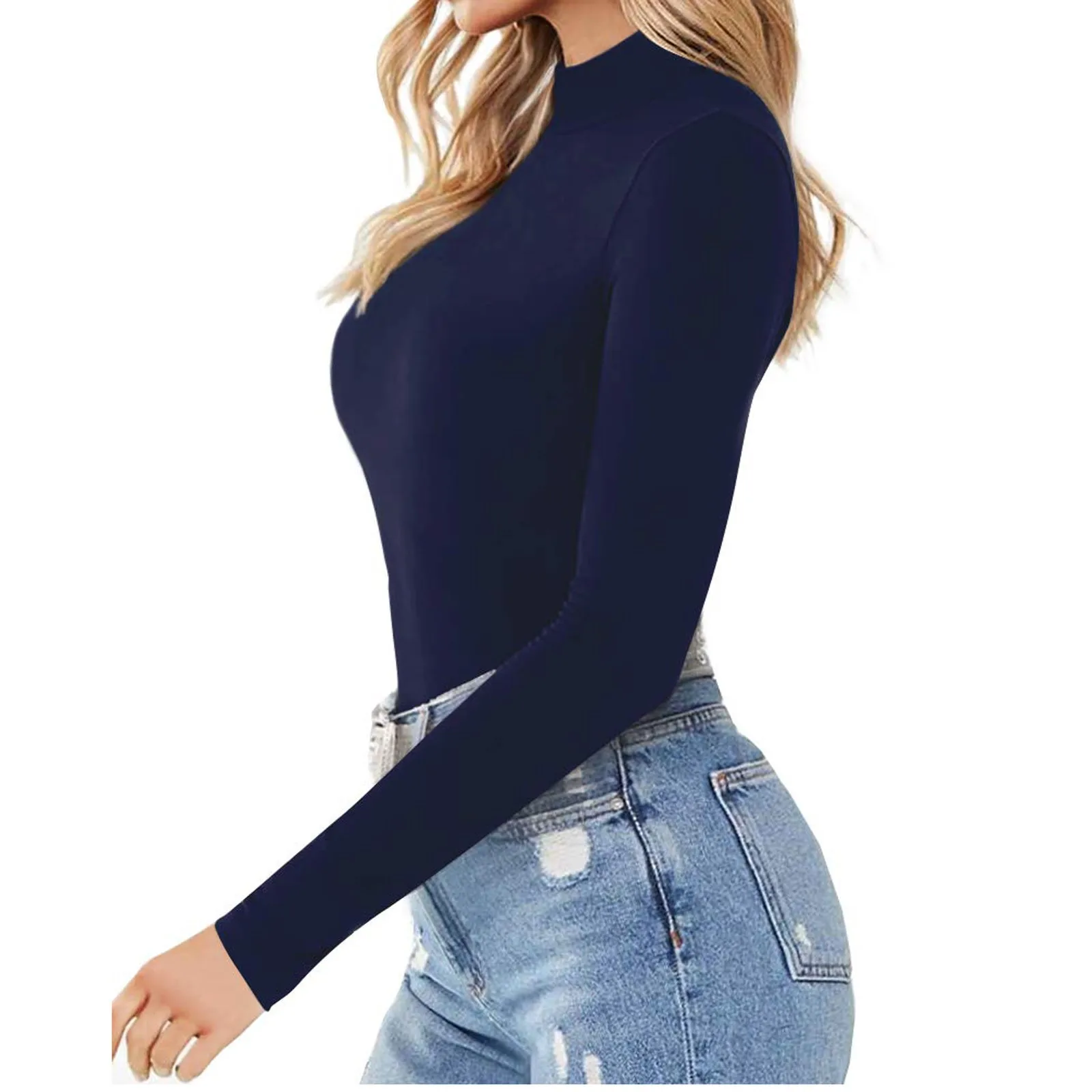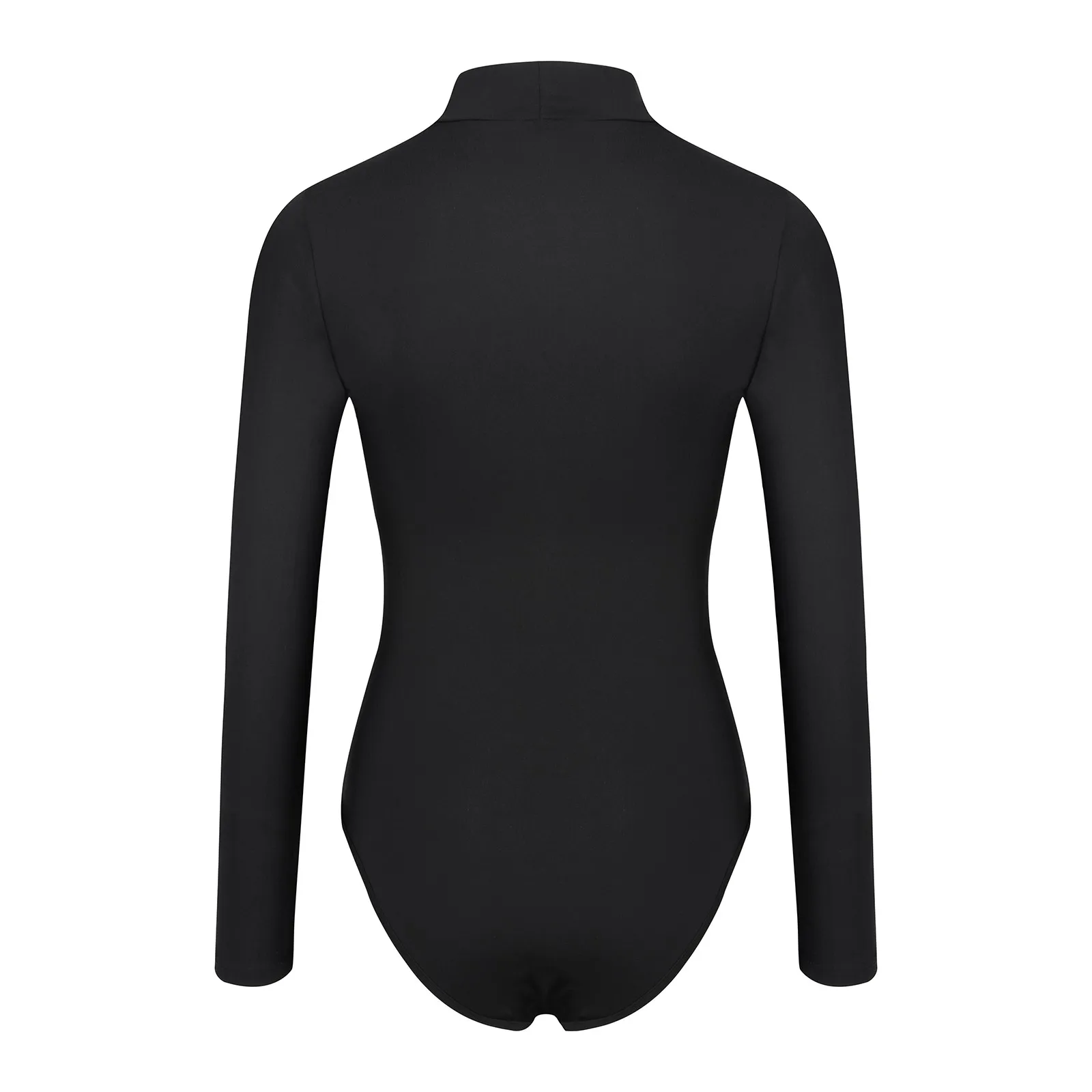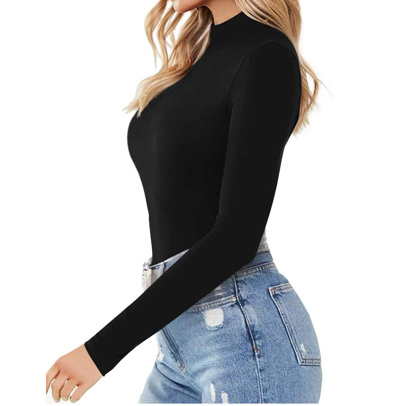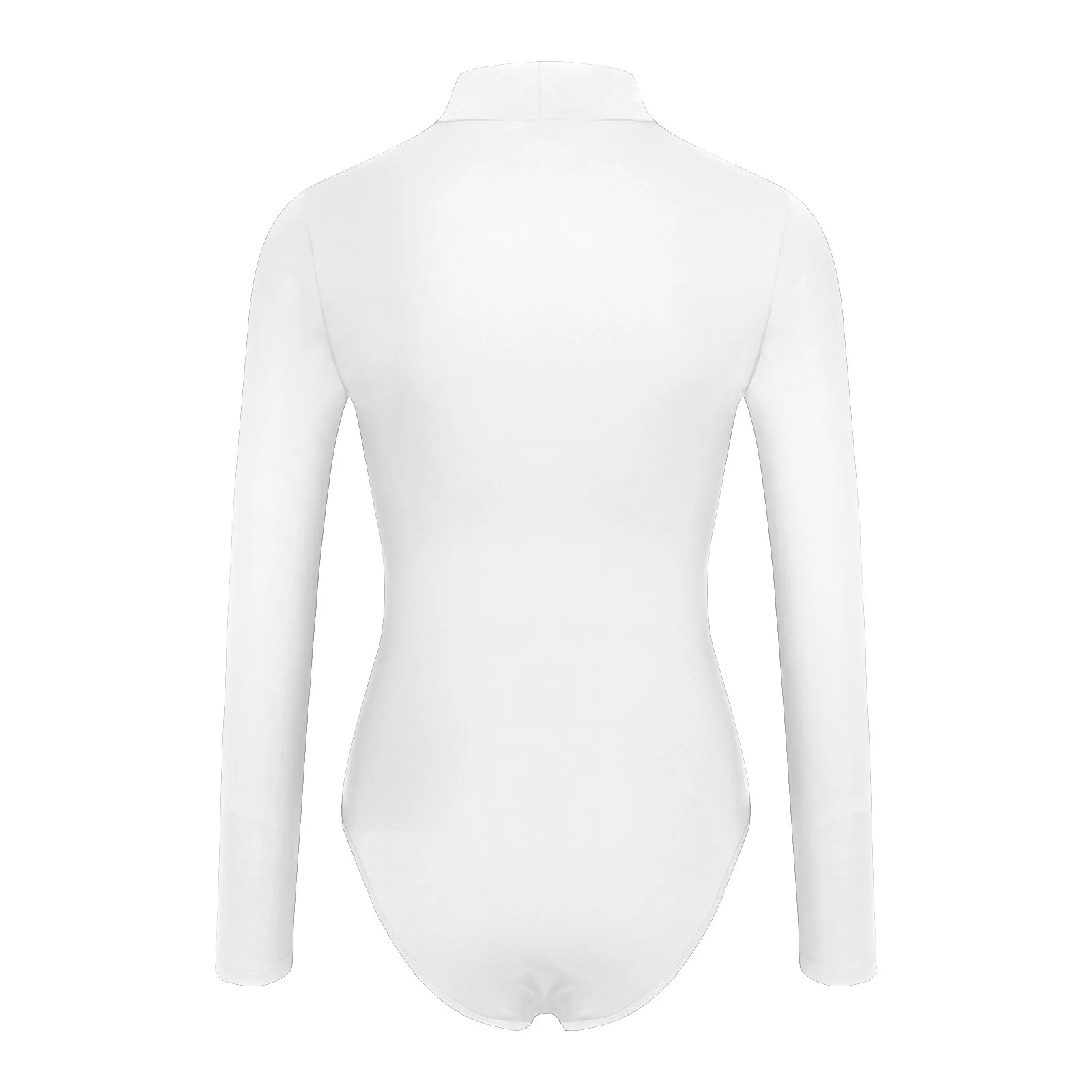 Боди женское однотонное с высоким горлом, пикантный Топ с длинным рукавом, элегантный облегающий боди, Черный Белый боди, Осень-зима