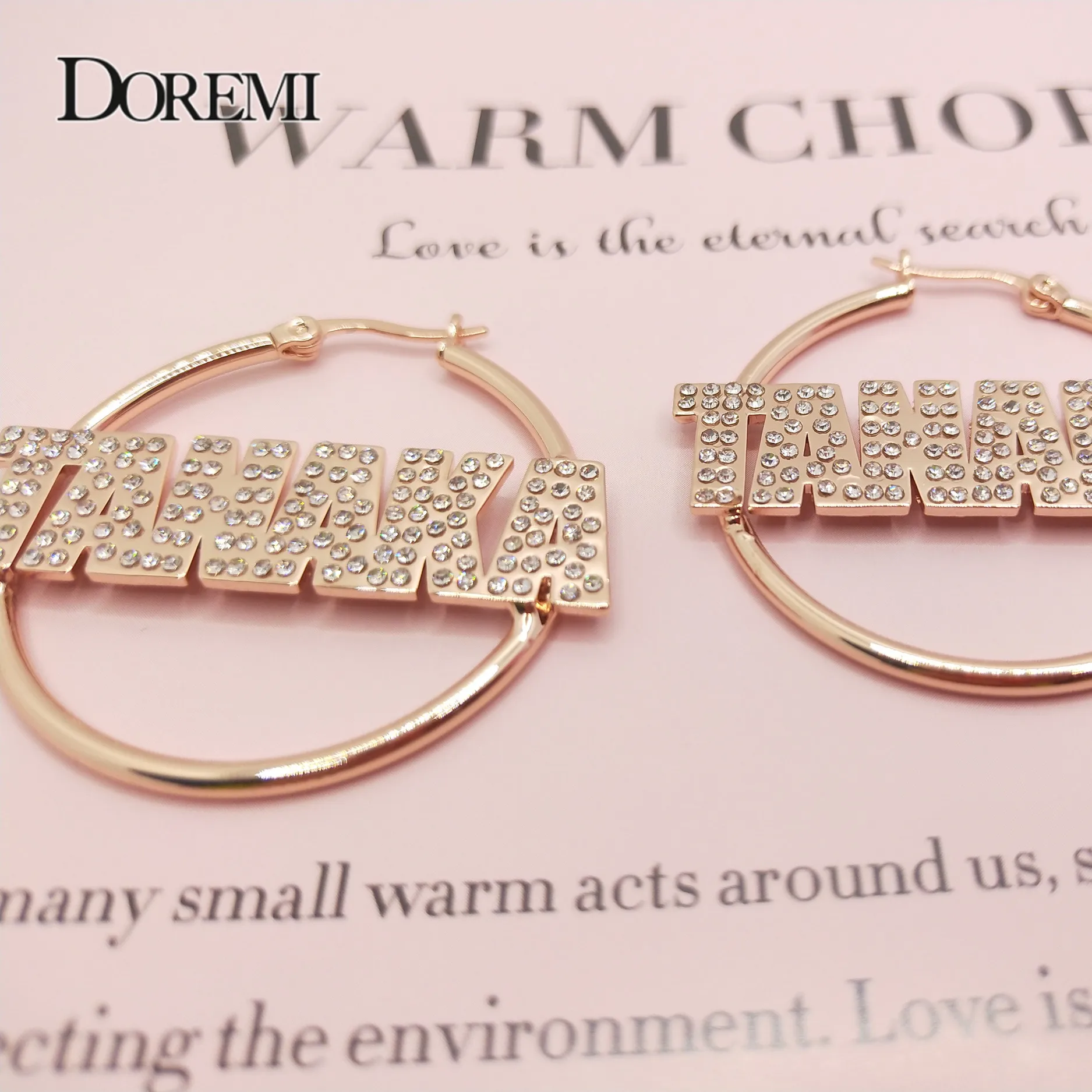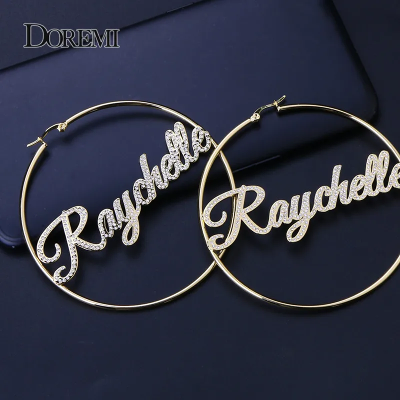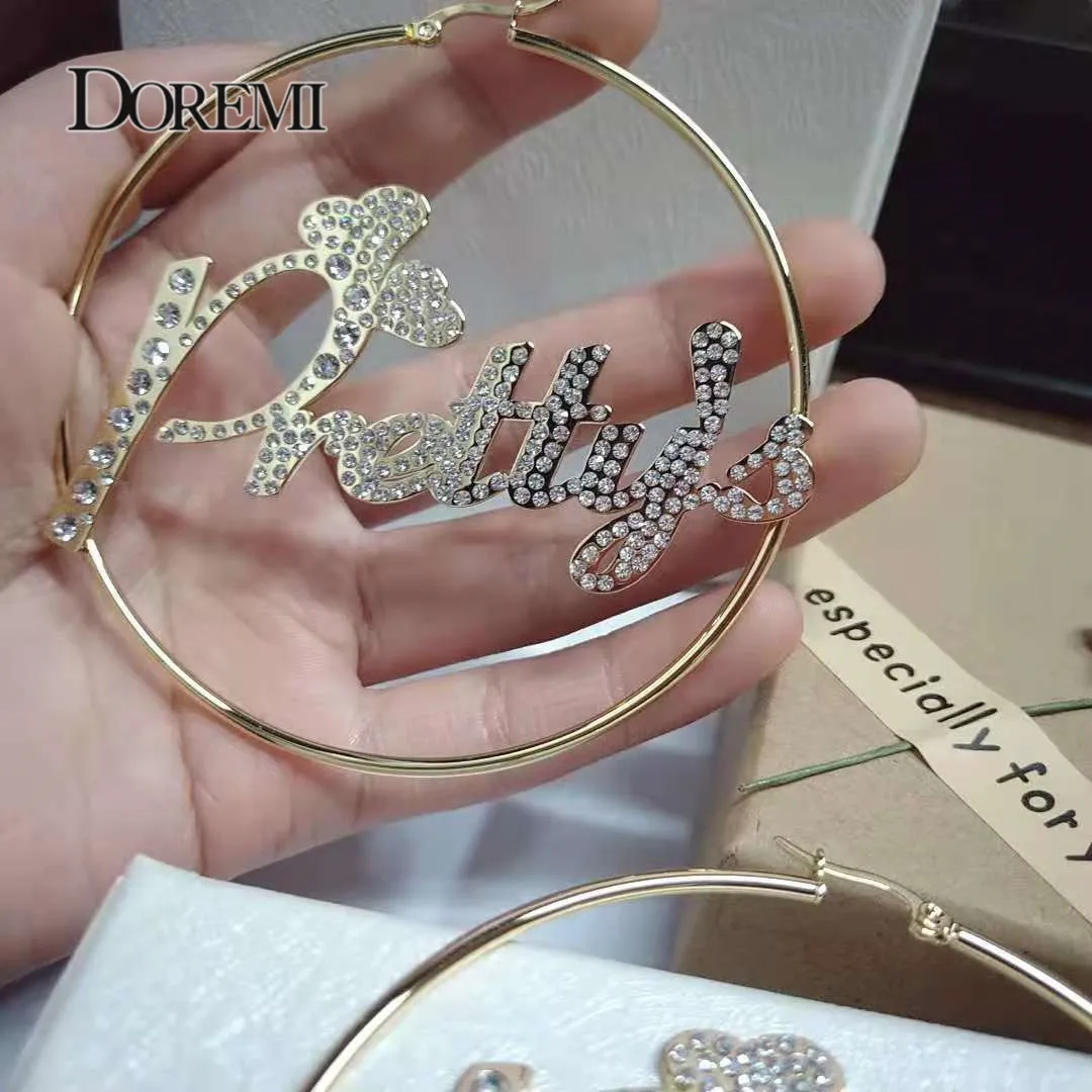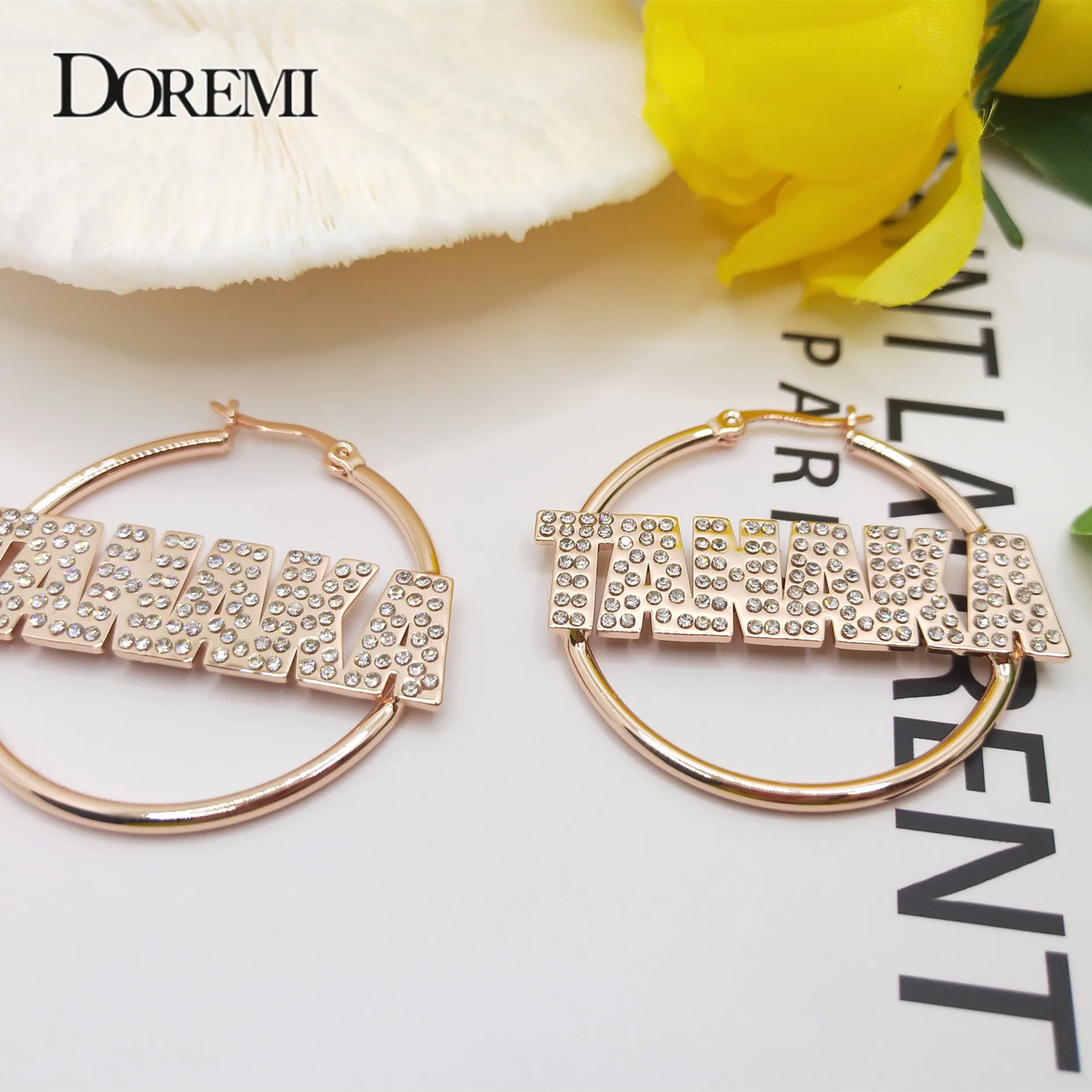 DOREMI Iced Out Bling Name серьги на заказ именные серьги с буквами Большие персонализированные именные серьги для женщин подарок