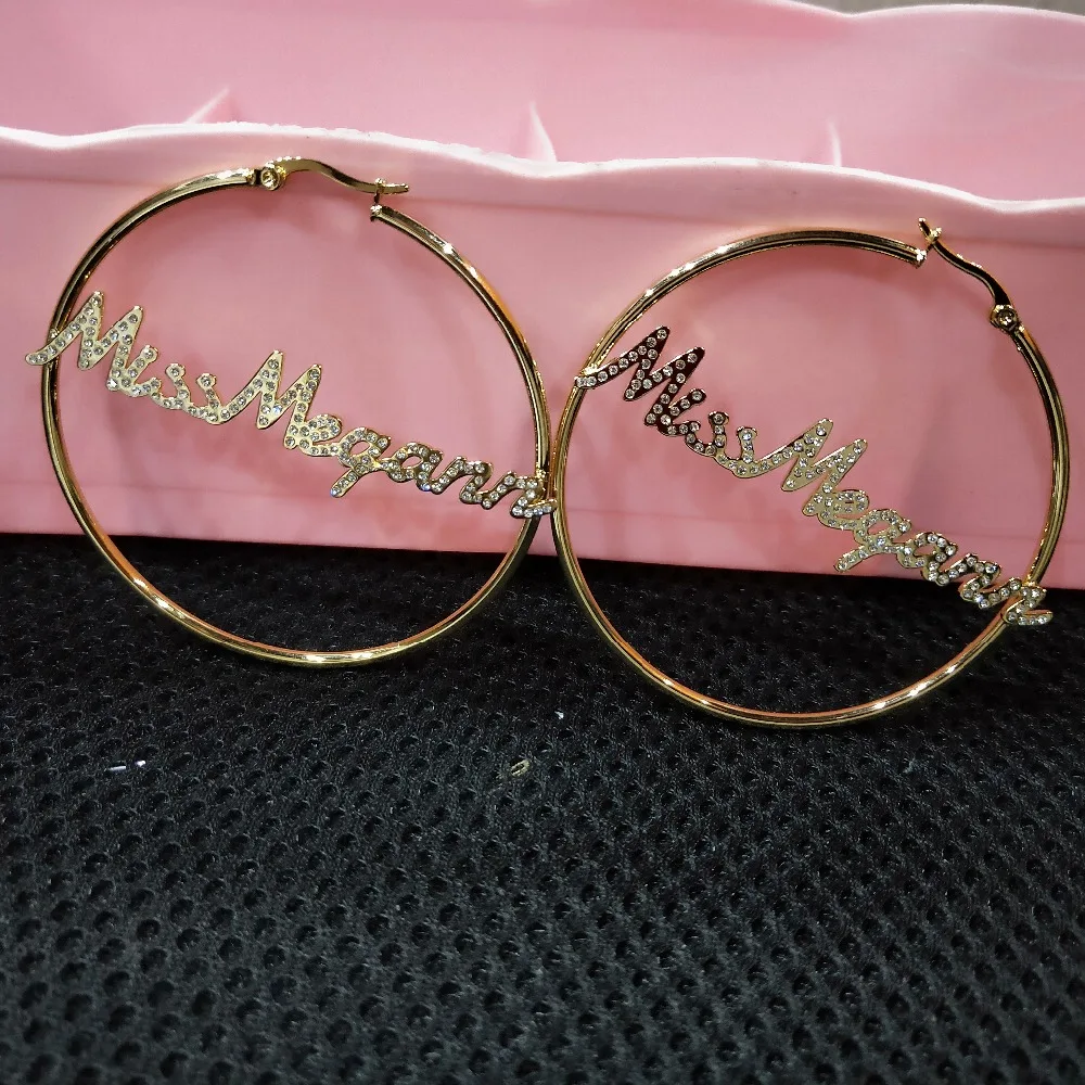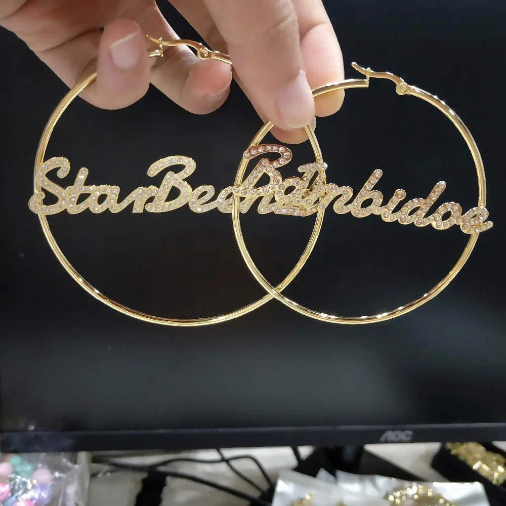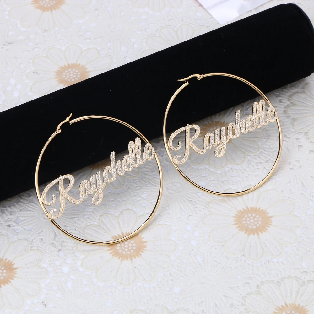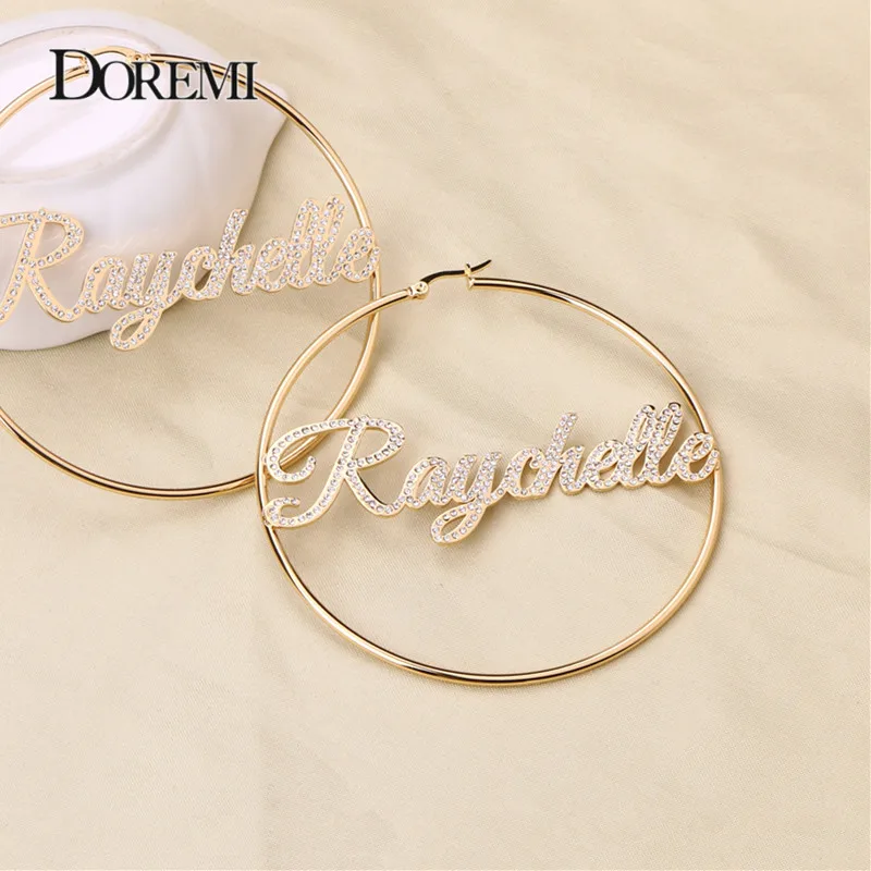 DOREMI Iced Out Bling Name серьги на заказ именные серьги с буквами Большие персонализированные именные серьги для женщин подарок