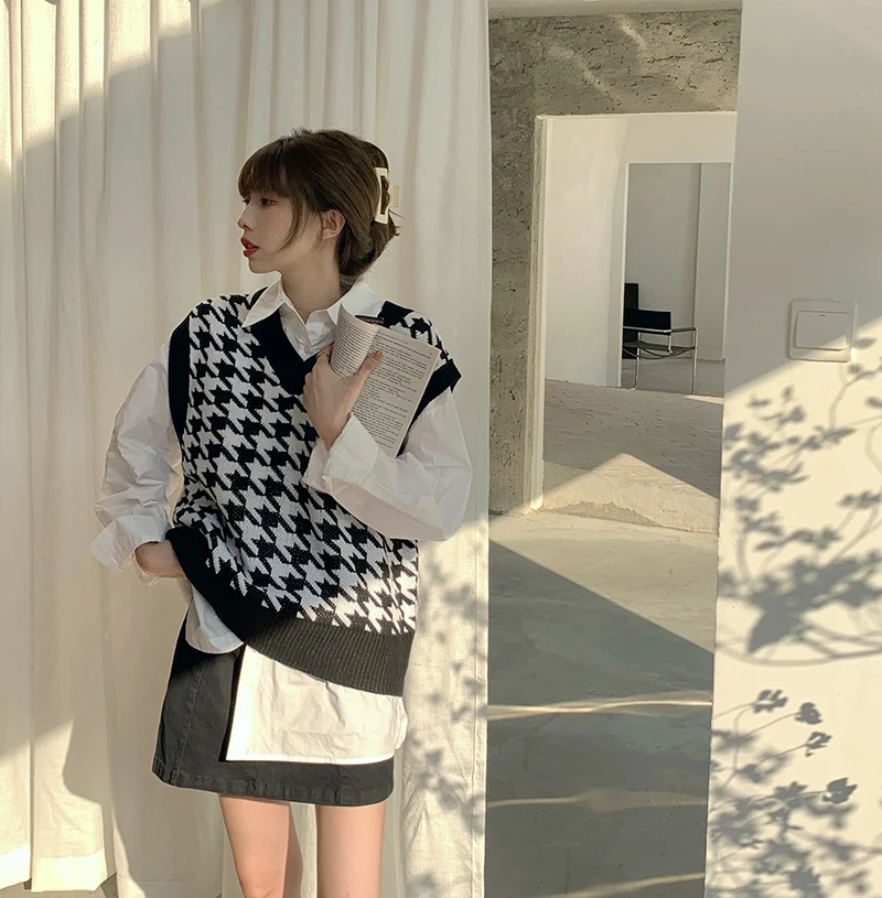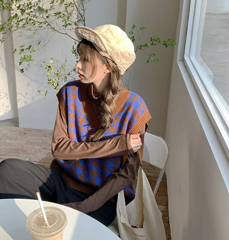 Жилет Y2KHoundstooth, пуловер, Женский вязаный жилет, новинка 2022,...
