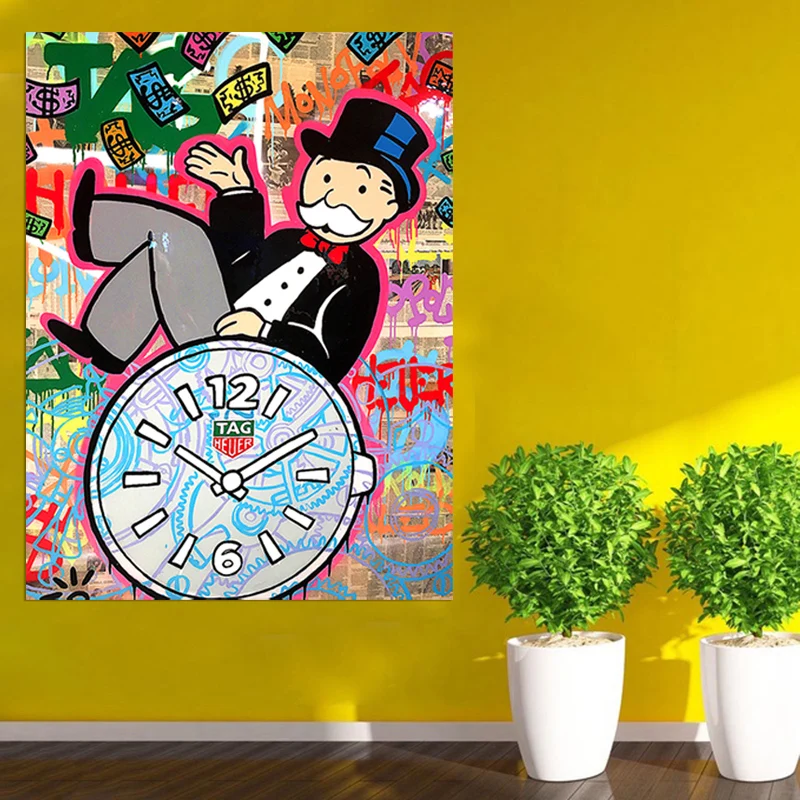 Alec монополистично на часах, картины на холсте, граффити, современная картина для гостиной, постер, настенное искусство, украшение для дома