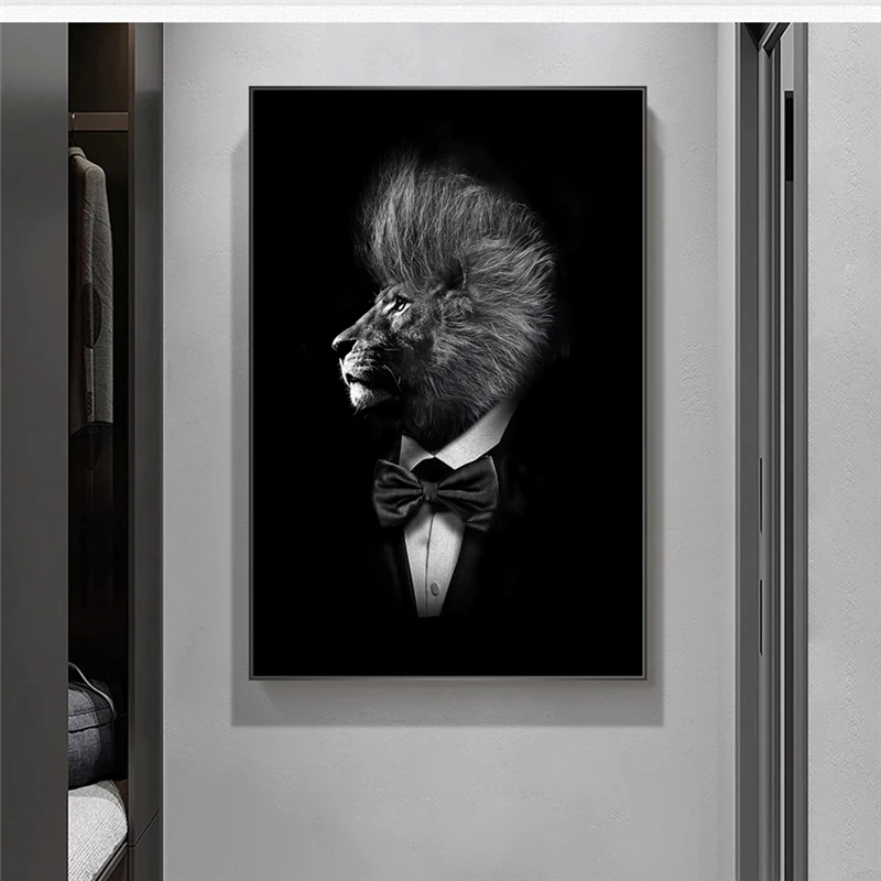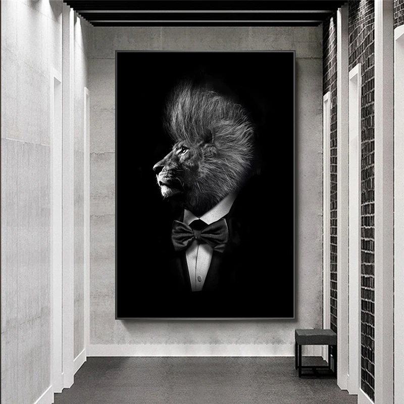 Nordic Львы в костюм из плотной ткани художественные плакаты и принты абстрактные Животные холст настенные картины искусство, картинки, на стену Декорация