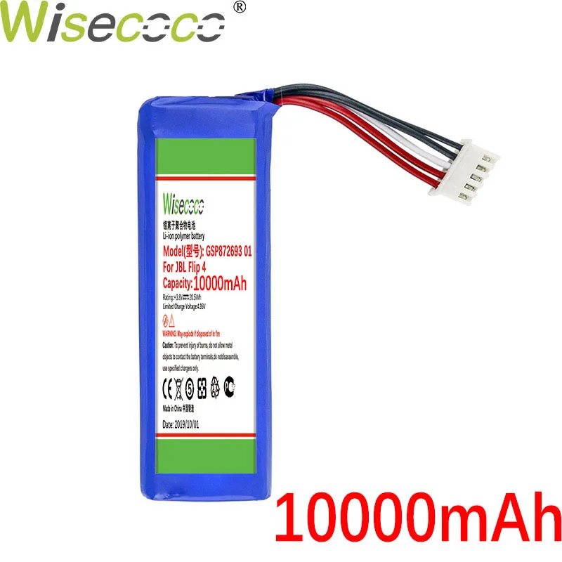 Аккумулятор WISECOCO 10000 мАч GSP872693 01 для JBL Flip 4 Flip 4 Special Edition, высокое качество + номер для отслеживания