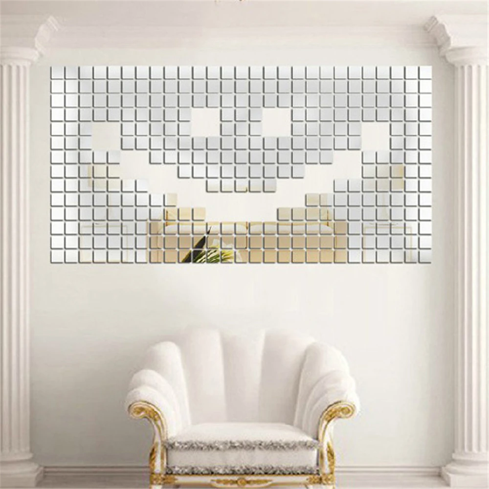 100 шт. квадратные мозаичные акриловые настенные наклейки сделай сам, зеркальные наклейки, обои, декор для спальни, гостиной, аксессуары для украшения дома