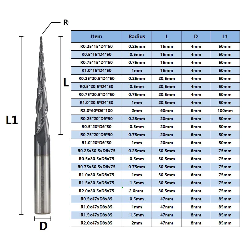 Фреза спиральная двухзаходная конусная сферическая Xcan для 3D R1...