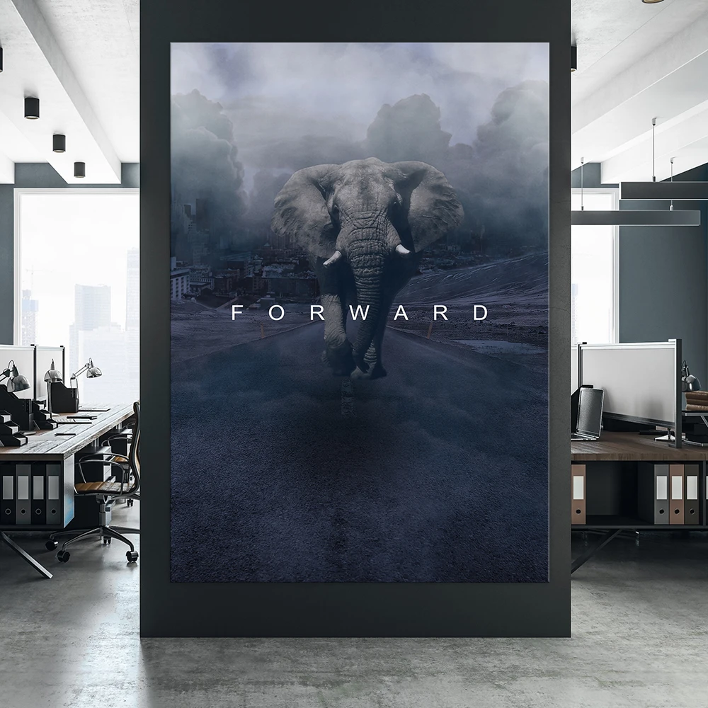 Большая Картина на холсте, движущийся слон вперед, настенный художественный постер и принты, картины, настенные картины для украшения дома, гостиной