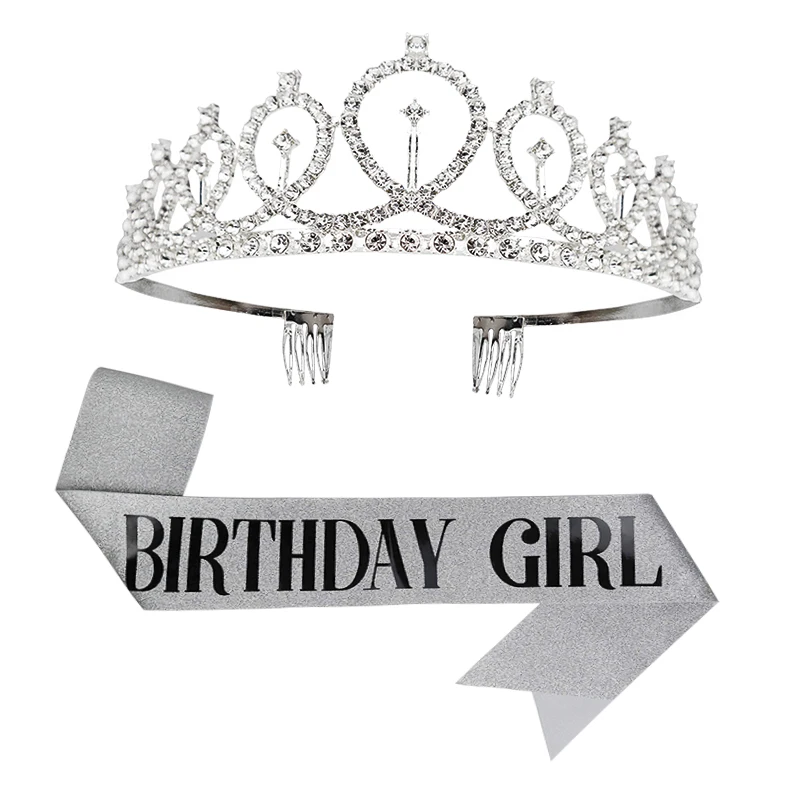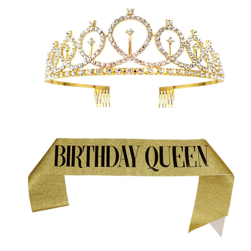 Золотые и серебряные блестящие лента для дня рождения Стразы, тиара...