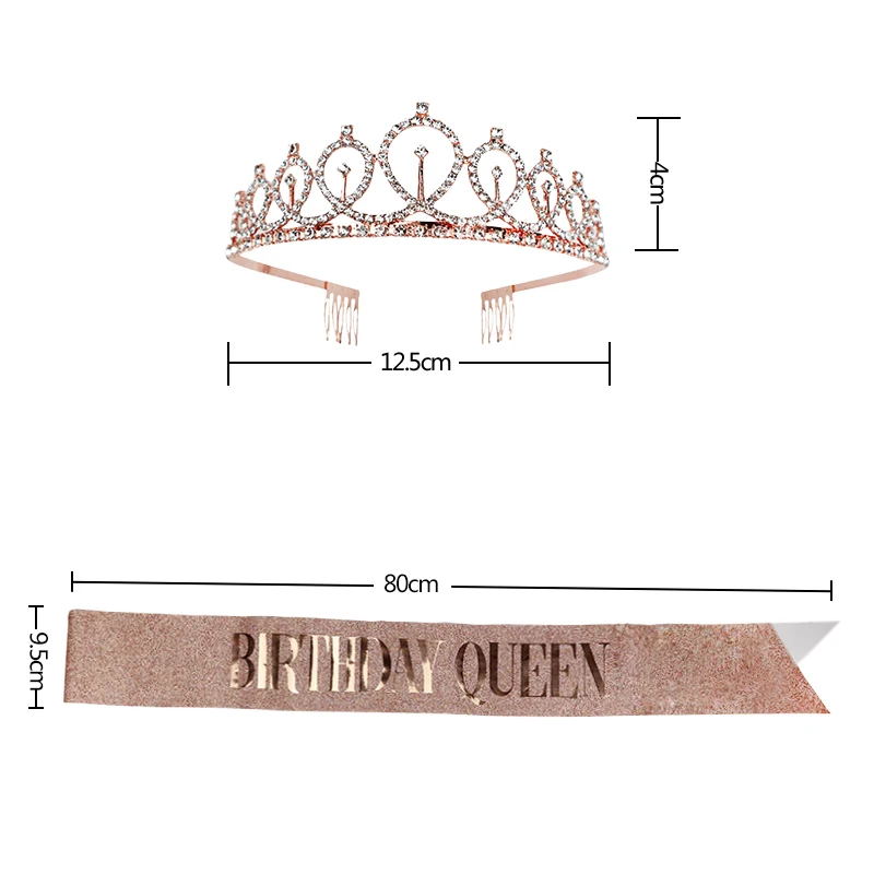Королева на день рождения, атласная лента, пояс, розовое золото, Хрустальная корона, тиара для девочки на день рождения, наплечный ремень, этикетка, пояс, декор Вечерние