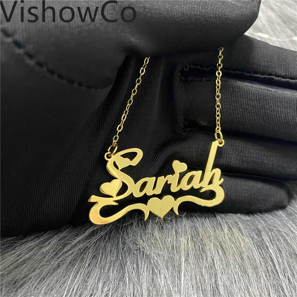Ожерелье с именем VishowCo на заказ для детей, подарок, персонализированный Золотой чокер из нержавеющей стали, ожерелье с кулоном в виде сердца, ювелирные изделия